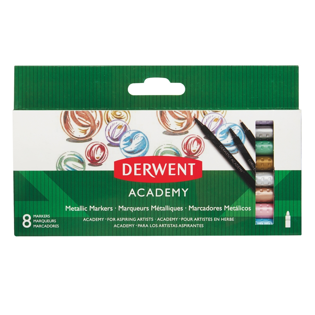 • Set 8 markere metalice Derwent Academy – culori intense și strălucitoare