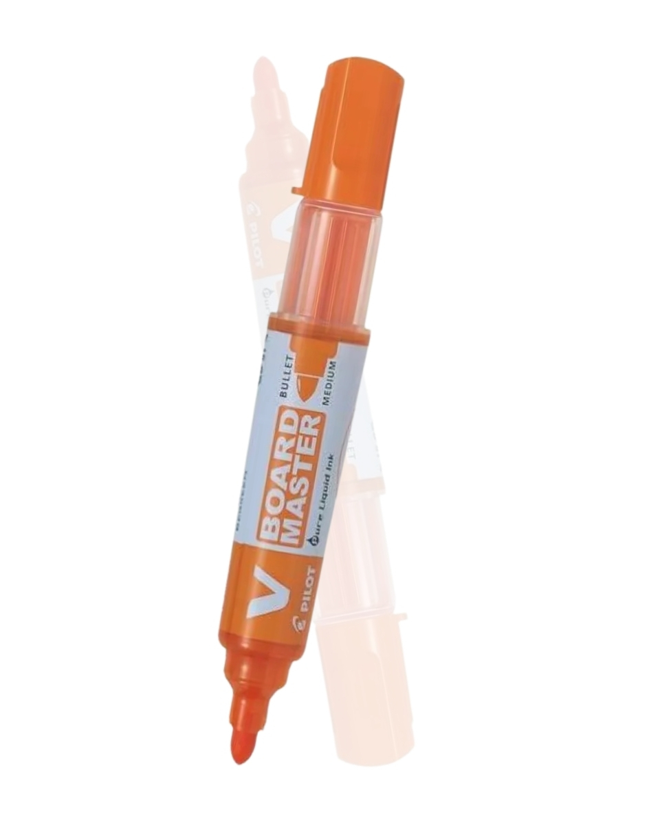 Markerul Pilot Vboard Master portocaliu, cu vârf rotund și scriere de 2,3 mm, adaugă claritate și expresivitate oricărei activități pe tablă. Durabil, reîncărcabil și realizat din materiale reciclate, este o alegere responsabilă și practică pentru școală, birou sau traininguri.
