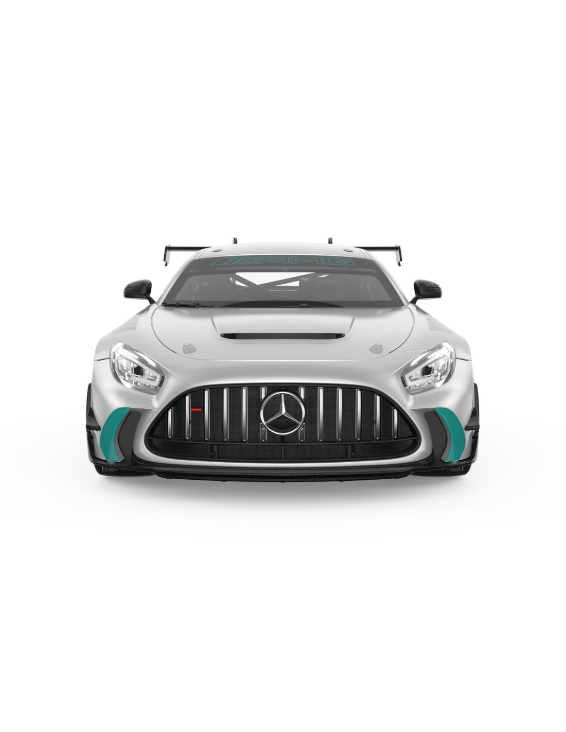 Masina cu telecomanda MERCEDES AMG GT2, scara 1 la 14, poate rula cu o viteza aproximativa de 10km/h, are tractiune 2WD, anvelope de cauciuc, posibilitate de reglaj a directiei direct pe sasiu si o raza de actiune a telecomenzii de circa 20 de metri.