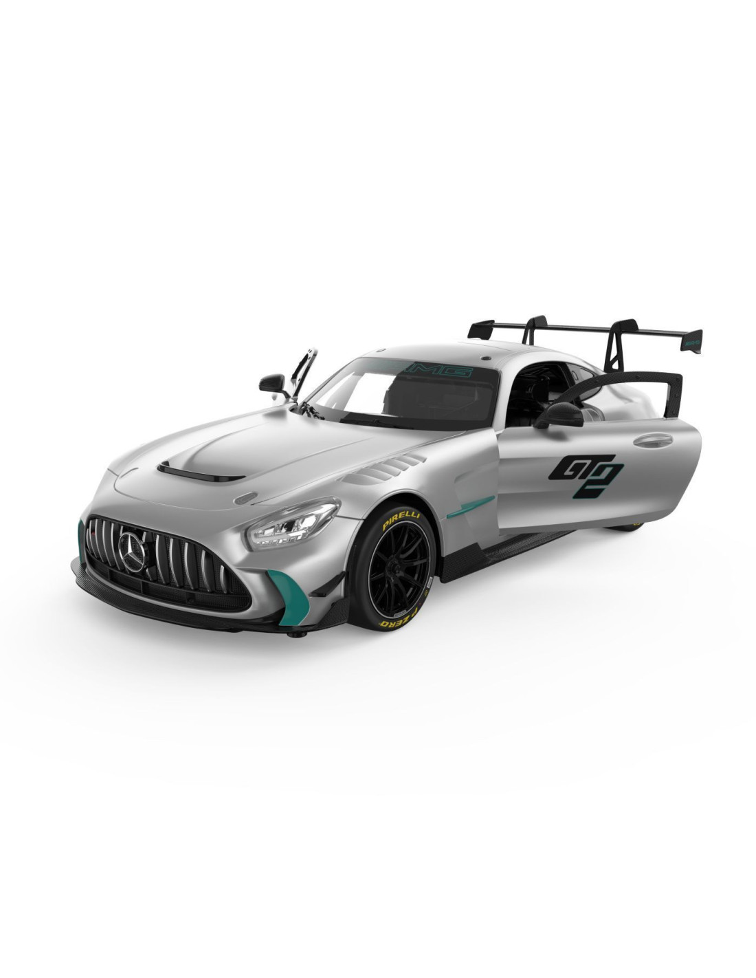 Copilul dumneavoastra se poate juca in voie cu masina cu telecomanda MERCEDES AMG GT2, scara 1 la 14, oferita de brandul international Rastar.