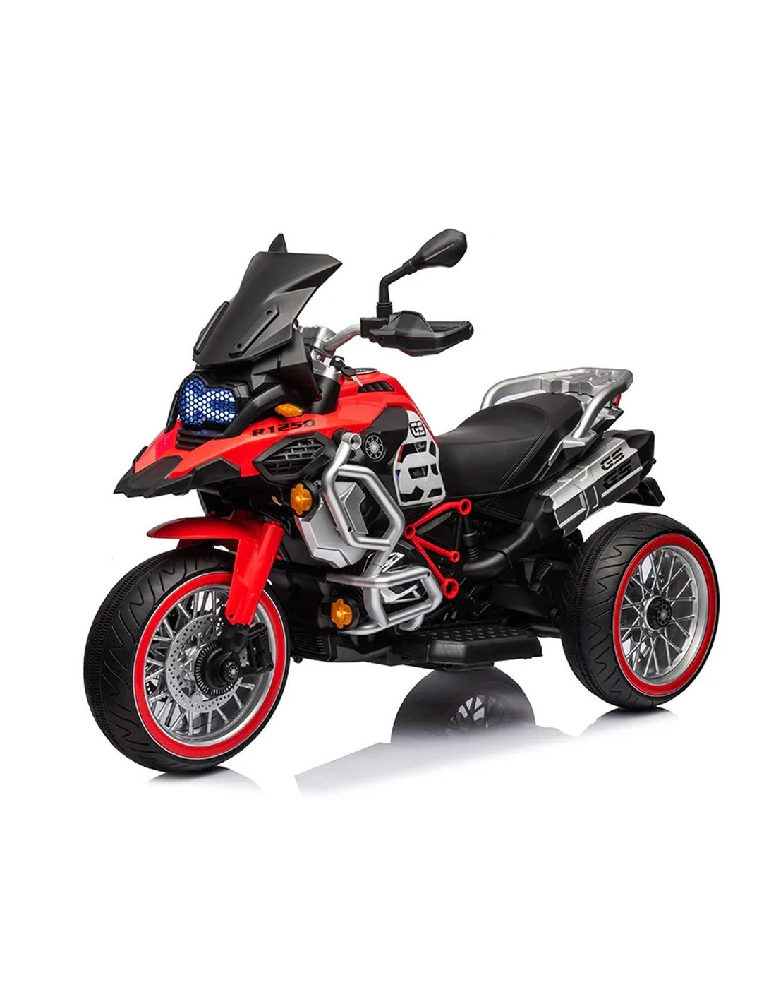 - Vehiculul este echipat cu buton pornire/oprire, comutator intre directiile de mers (inainte/stop/inapoi), pedala acceleratie, 2 motoare, acumulator 12V, faruri/stopuri, parbriz, 3 roti late, din material plastic, manere antiderapante, din cauciuc, functii de muzica si lumini.