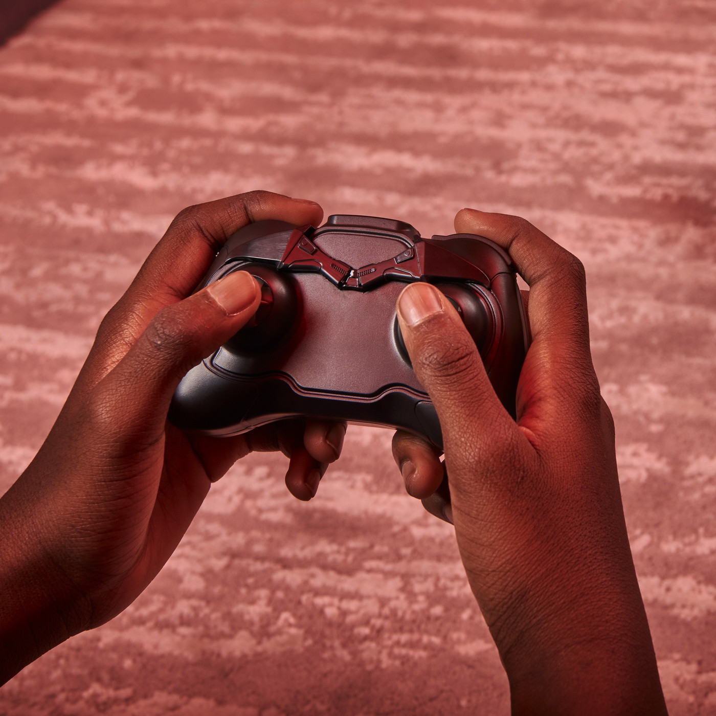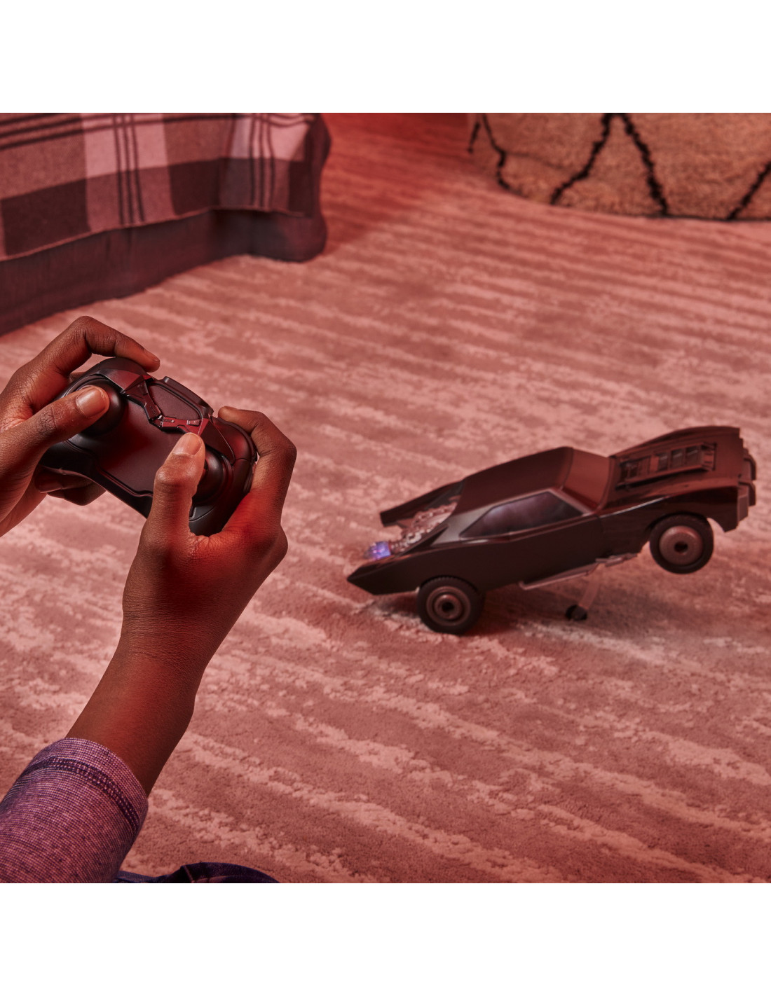 Telecomanda cu doua manse de comanda este reincarcabila prin USB si dispune de senzori de iesire din raza de actiune, astfel incat sa stii cand Batmobilul tau trebuie sa ramana in raza de actiune, sa-l reincarci ca si sa poata intra din nou in actiune.