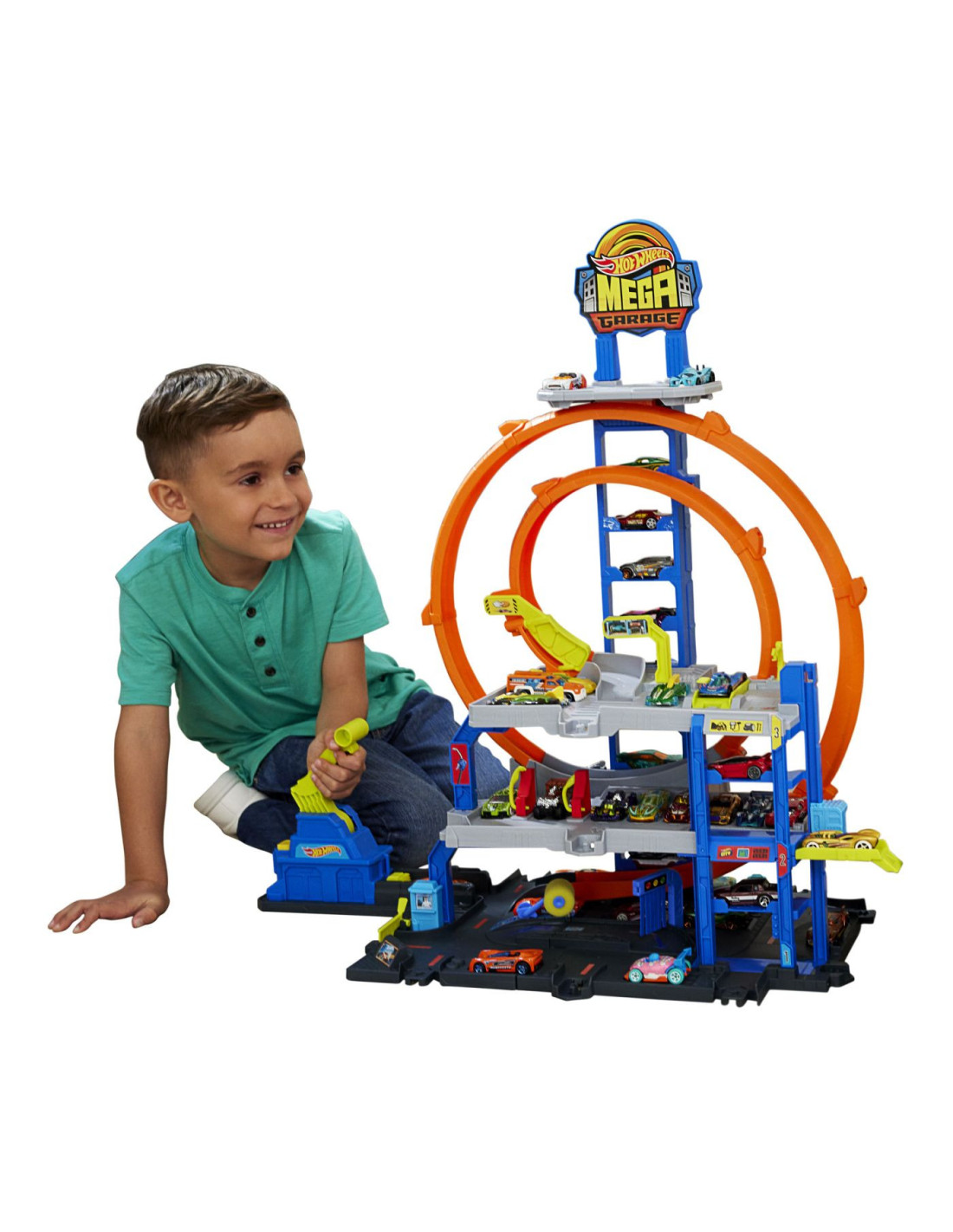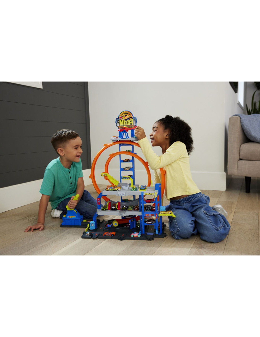Intra in lumea aventurilor Hot Wheels cu Mega Garaj, un set de joaca spectaculos cu 3 niveluri de actiune, perfect pentru tinerii piloti care viseaza la curse ametitoare si cascadorii extreme!