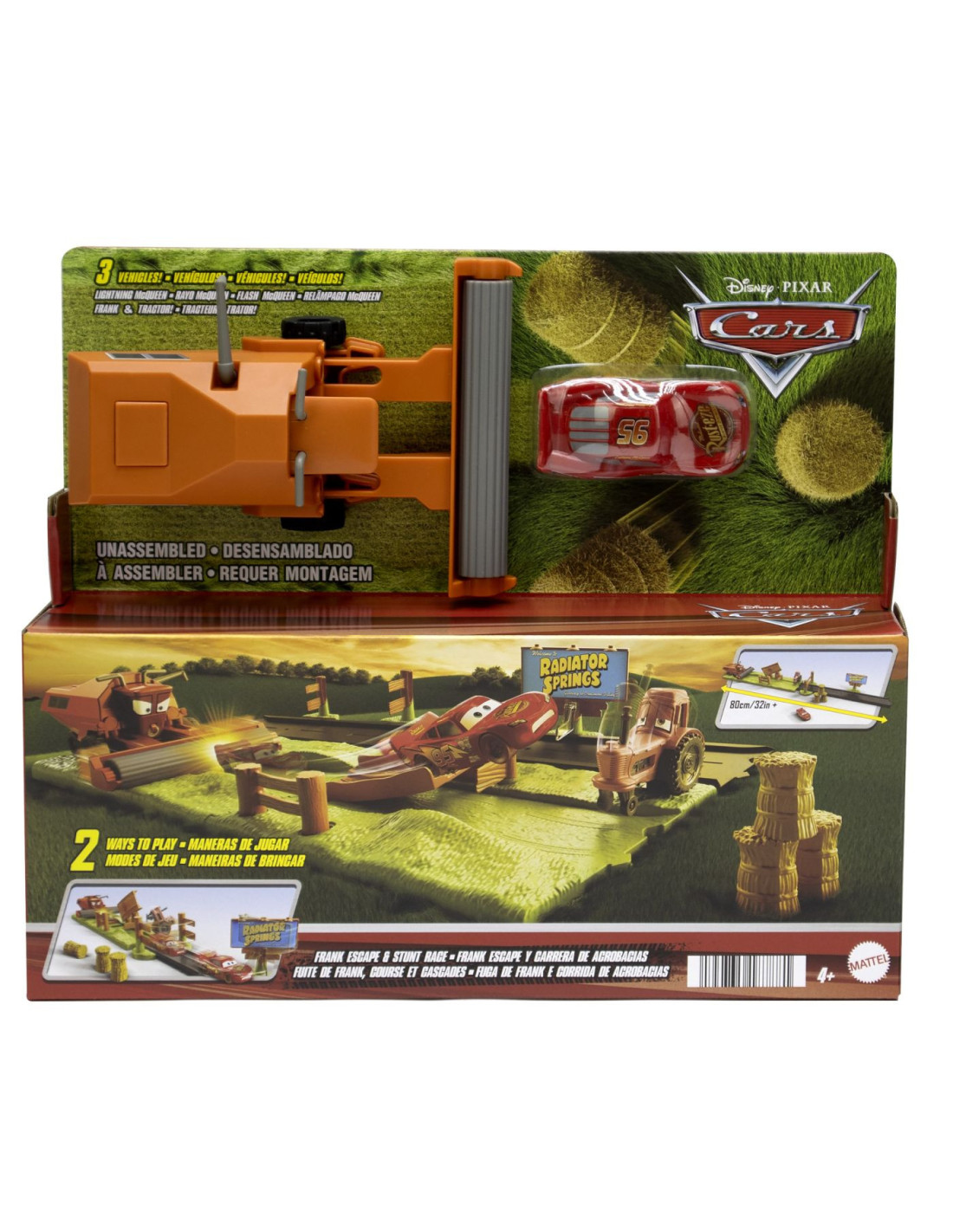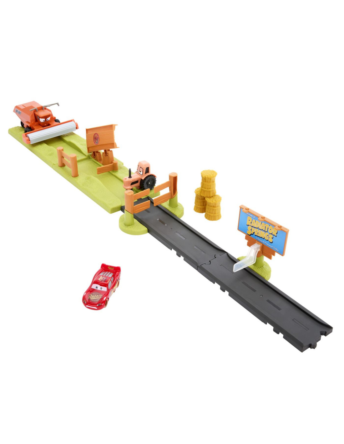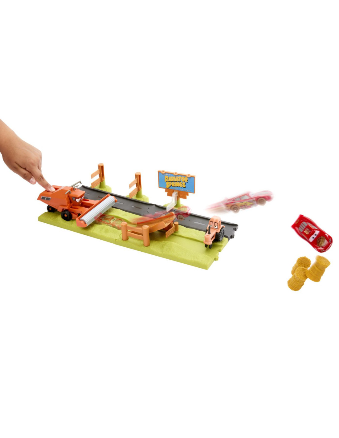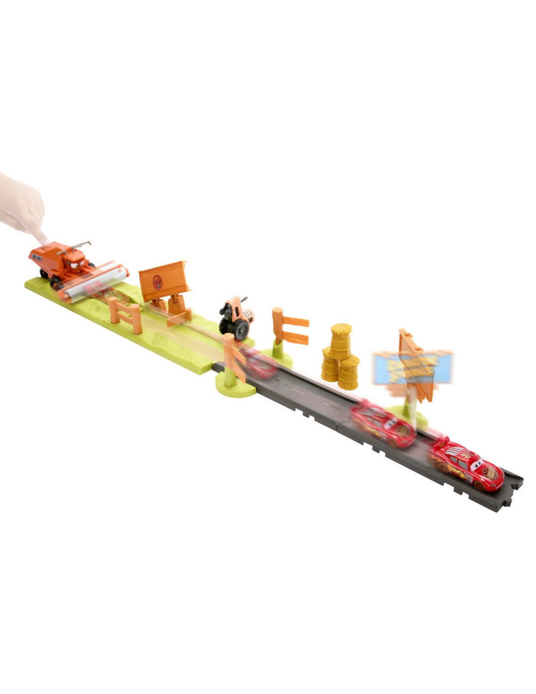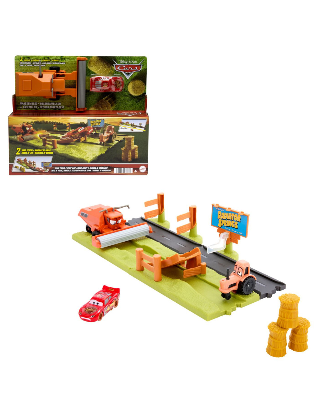 Inspirat din scenele pline de adrenalina ale filmului Disney Pixar Cars, acest set le permite copiilor sa retraiasca momentul in care Lightning McQueen incearca sa scape de combinatorul Frank.