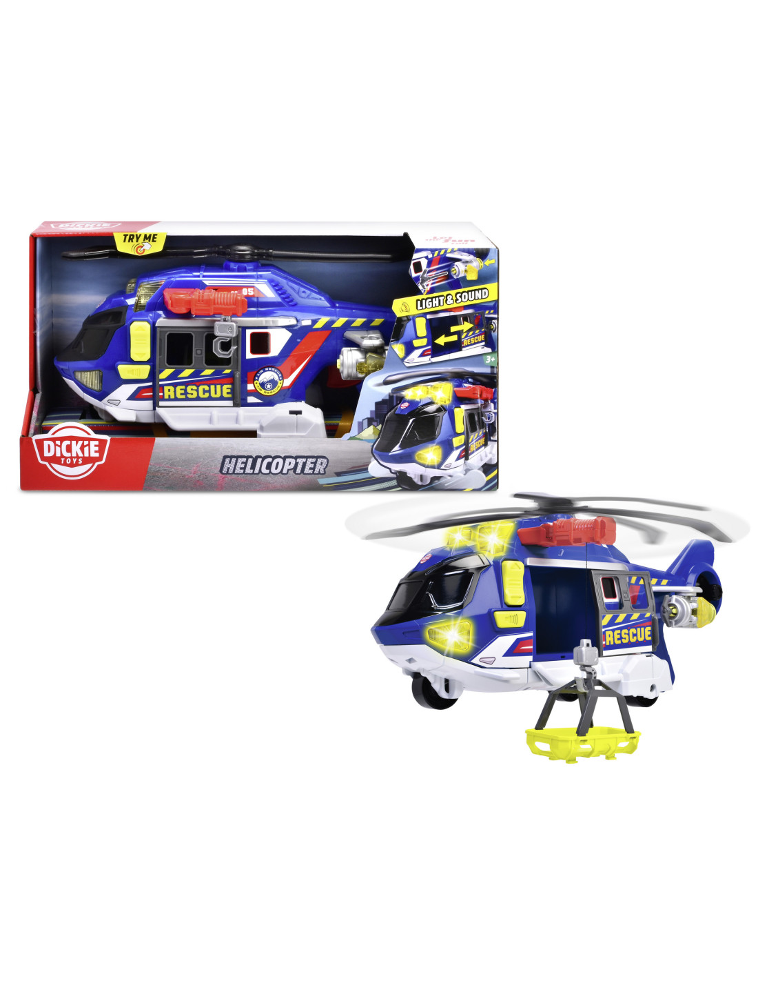 Dickie Toys Elicopter de jucarie mare pentru copii cu varsta de 3 ani si peste (39 cm) Elicopter de salvare cu troliu cu cablu, accesorii, efecte luminoase si sonore (include baterii).