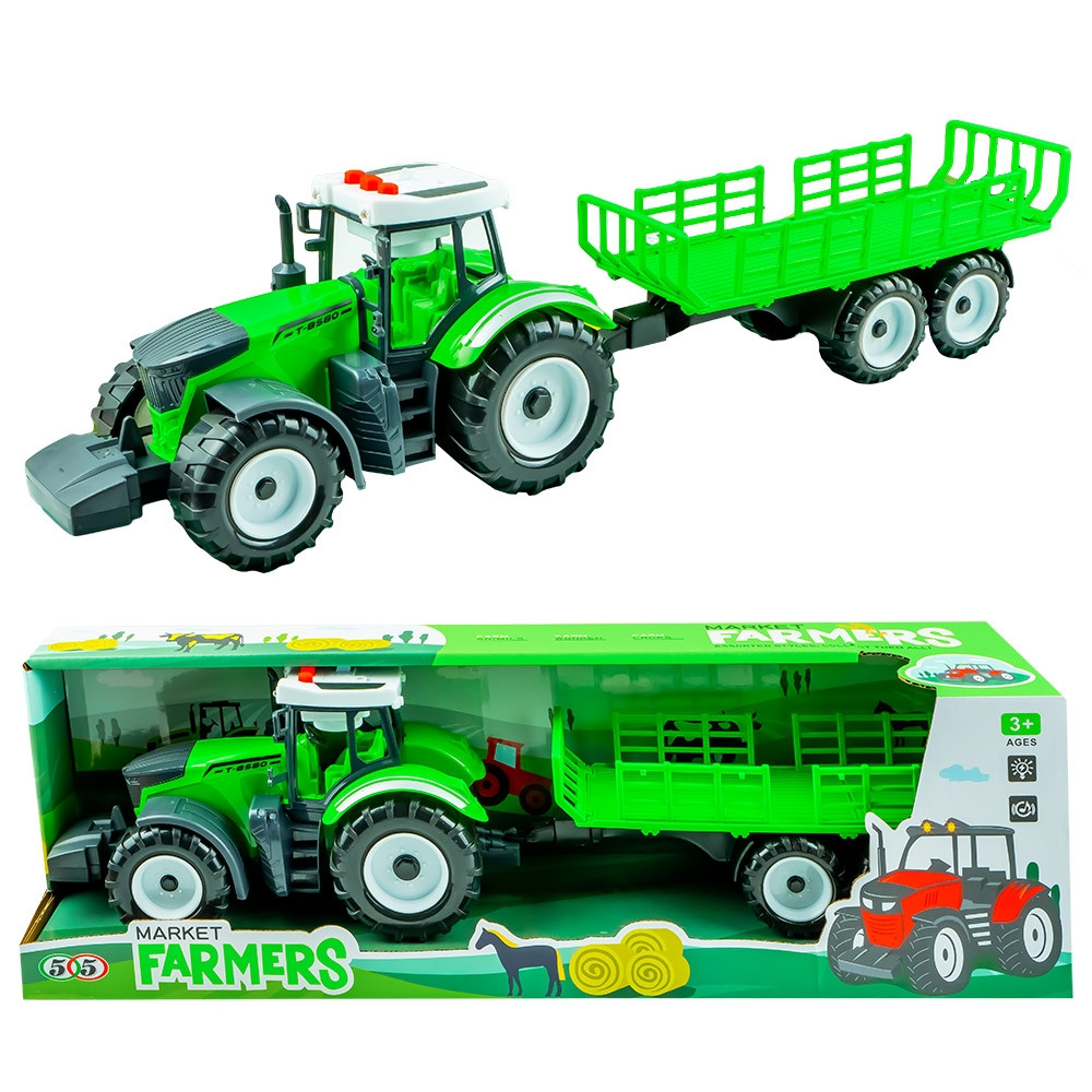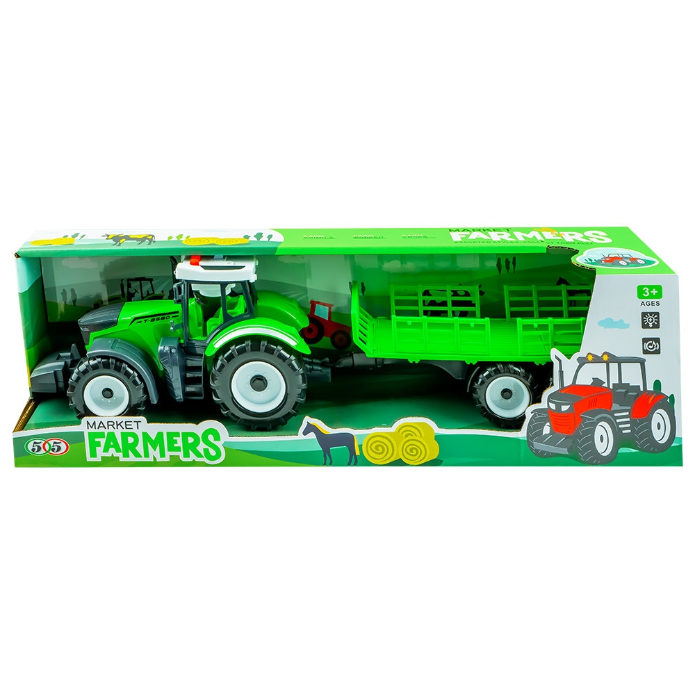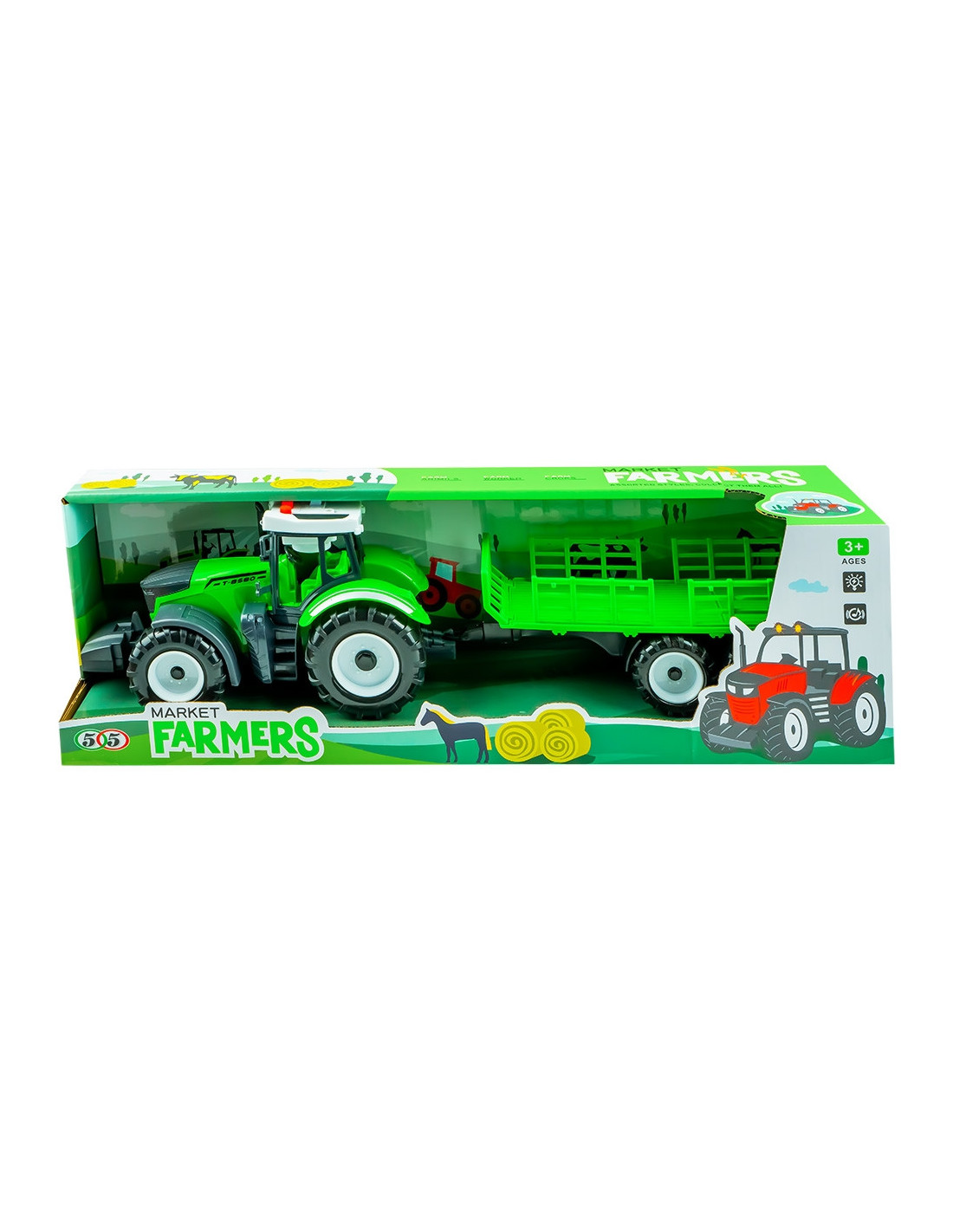 - Jucaria ce asigura micilor fermieri un joc variat contine un tractor la care este atasata o remorca.