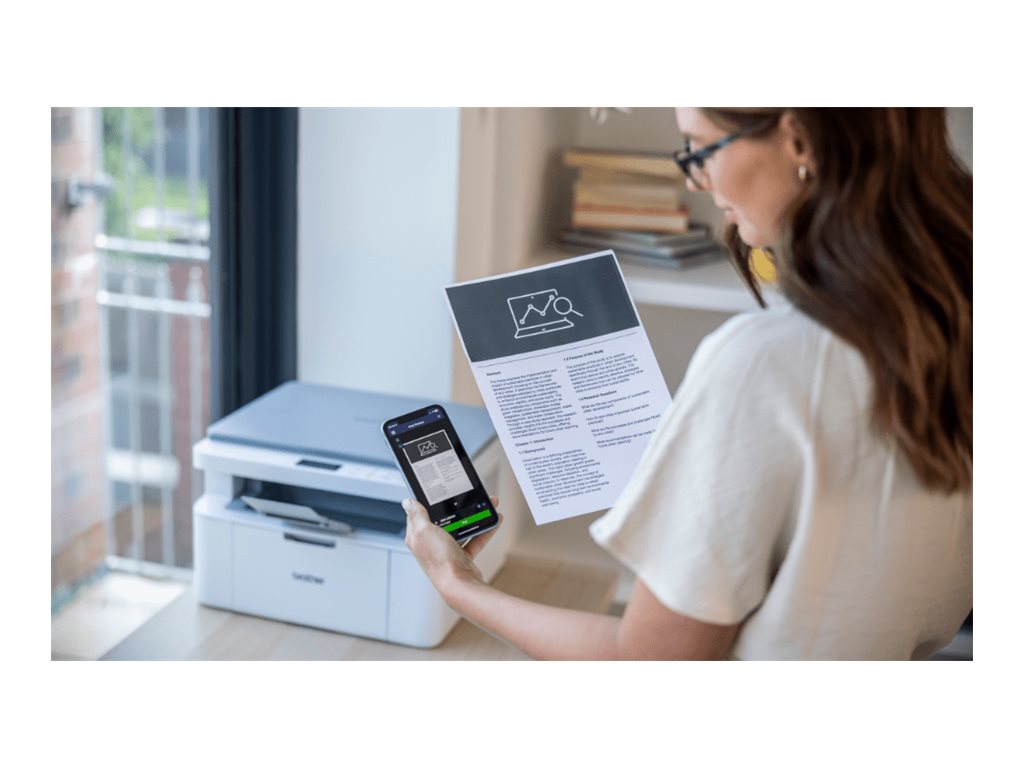 Un avantaj important al acestui model este conectivitatea Wi-Fi integrată, care permite imprimarea fără cabluri, direct de pe PC, laptop sau dispozitive mobile, prin aplicațiile Brother. Conectarea prin USB oferă o alternativă stabilă pentru utilizare locală.