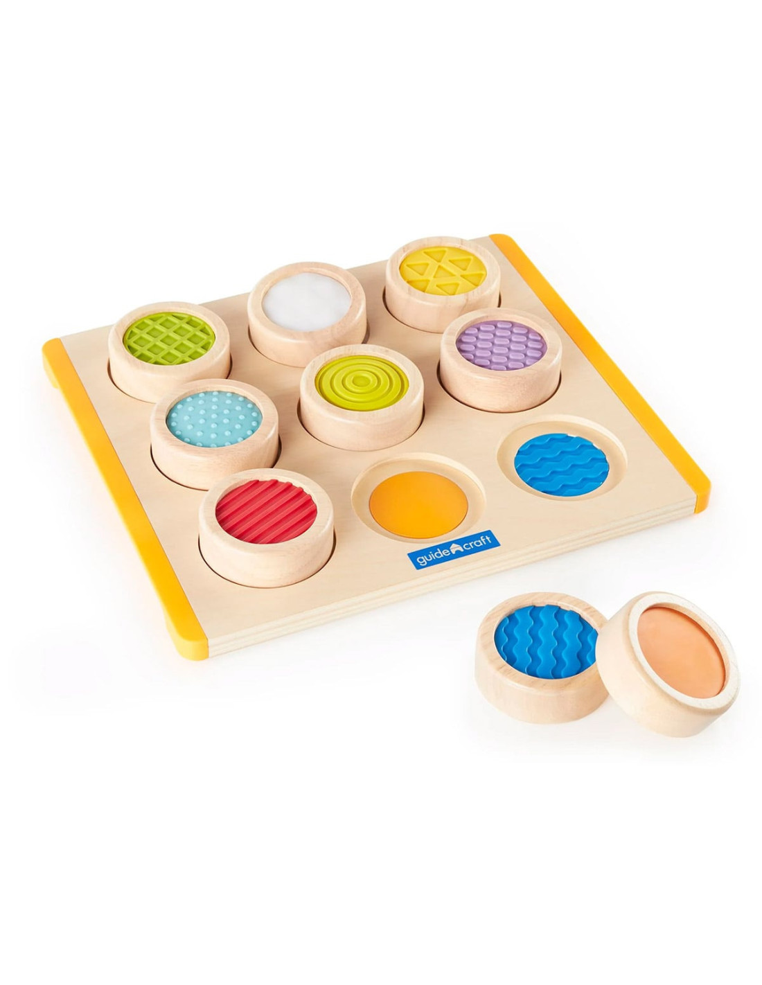 - Incurajati-i pe cei mici sa foloseasca jocul senzorial pentru a exersa abilitatile motorii fine, recunoasterea modelelor, formelor si culorilor, abilitatile de potrivire si cele de rezolvare a problemelor cu acest frumos puzzle tactil in culori vibrante de la Guidecraft!