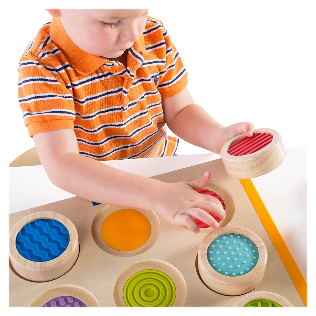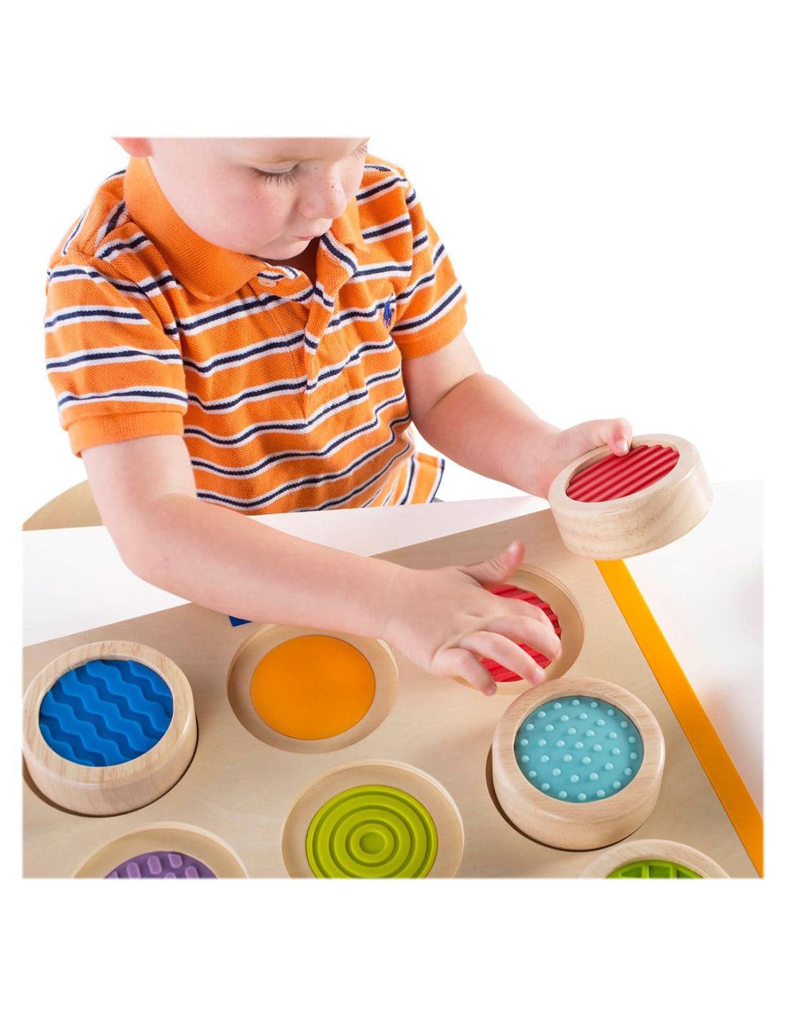 - Perfect pentru dezvoltarea tactila timpurie, acest puzzle senzorial, creat special pentru a antrena mainile si mintile copiilor curiosi cu varsta de peste 2 ani, ii incurajeza pe acestia sa descopere texturi diferite, sa asocieze si sa invete prin joaca.