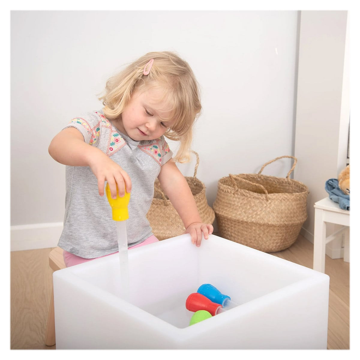 - In timp ce se distreaza jucandu-se cu pipetele, copiii isi vor dezvolta abilitatile motorii fine, dexteritatea, curiozitatea si vor descoperi notiunile primare ale stiintei.