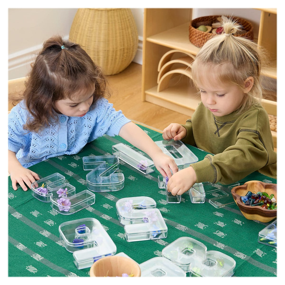 - Transforma invatarea in joaca cu casetele de depozitare in forma de cifre de la Guidecraft, un set transparent si durabil, ideal pentru depozitare, numarare, sortare, explorare si invatare!