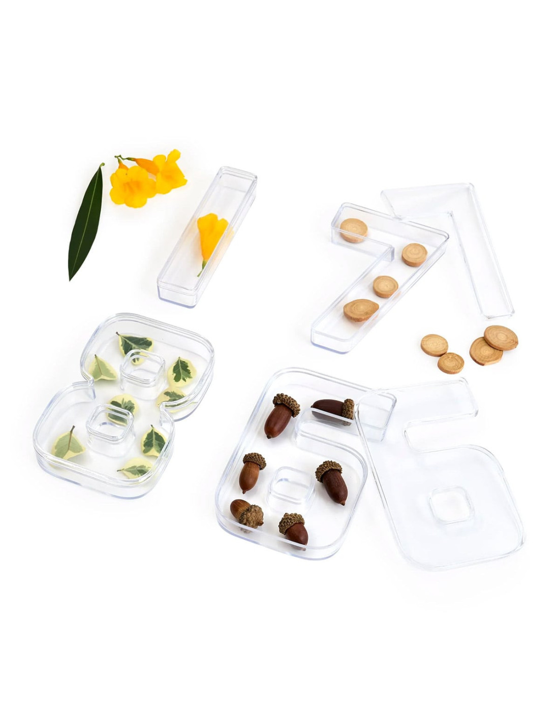 - Acest set ingenios include casete transparente in forma de cifre de la 0 la 9, cu capac detasabil, fabricate din plastic usor de curatat, concepute pentru a stimula dezvoltarea copiilor intr-un mod creativ, intuitiv si placut.