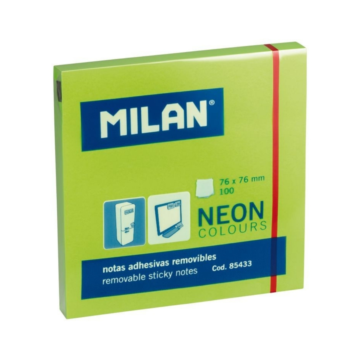 Bloc notes adeziv MILAN, 76 × 76 mm, verde neon – notițe rapide și organizare eficientă