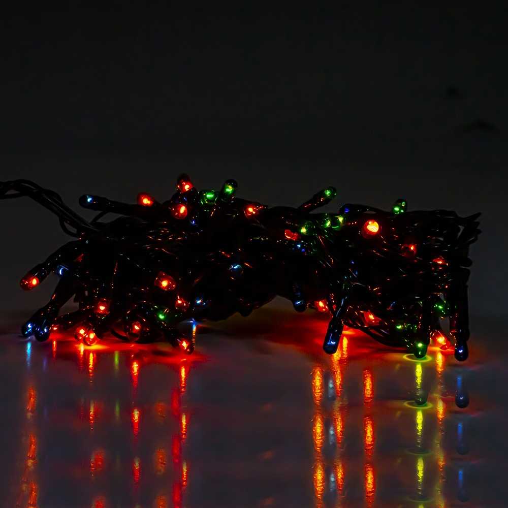 Alege instalația cu 100 LED-uri multicolore pentru un decor vibrant și plin de magie în fiecare colț al casei tale de Crăciun!