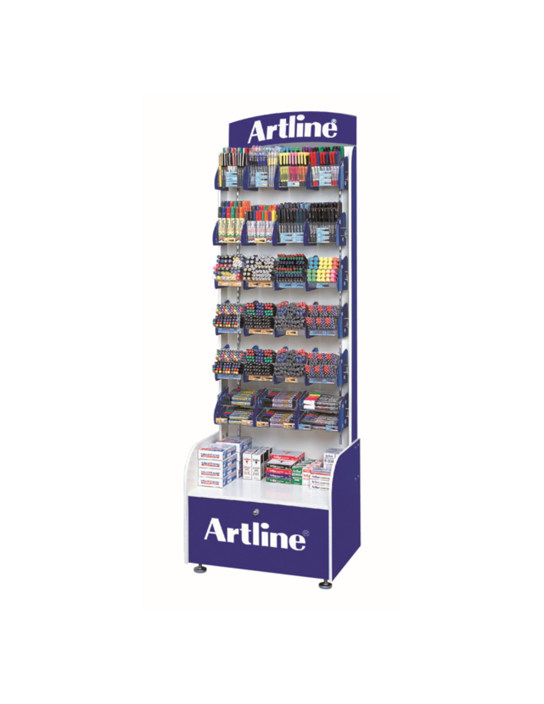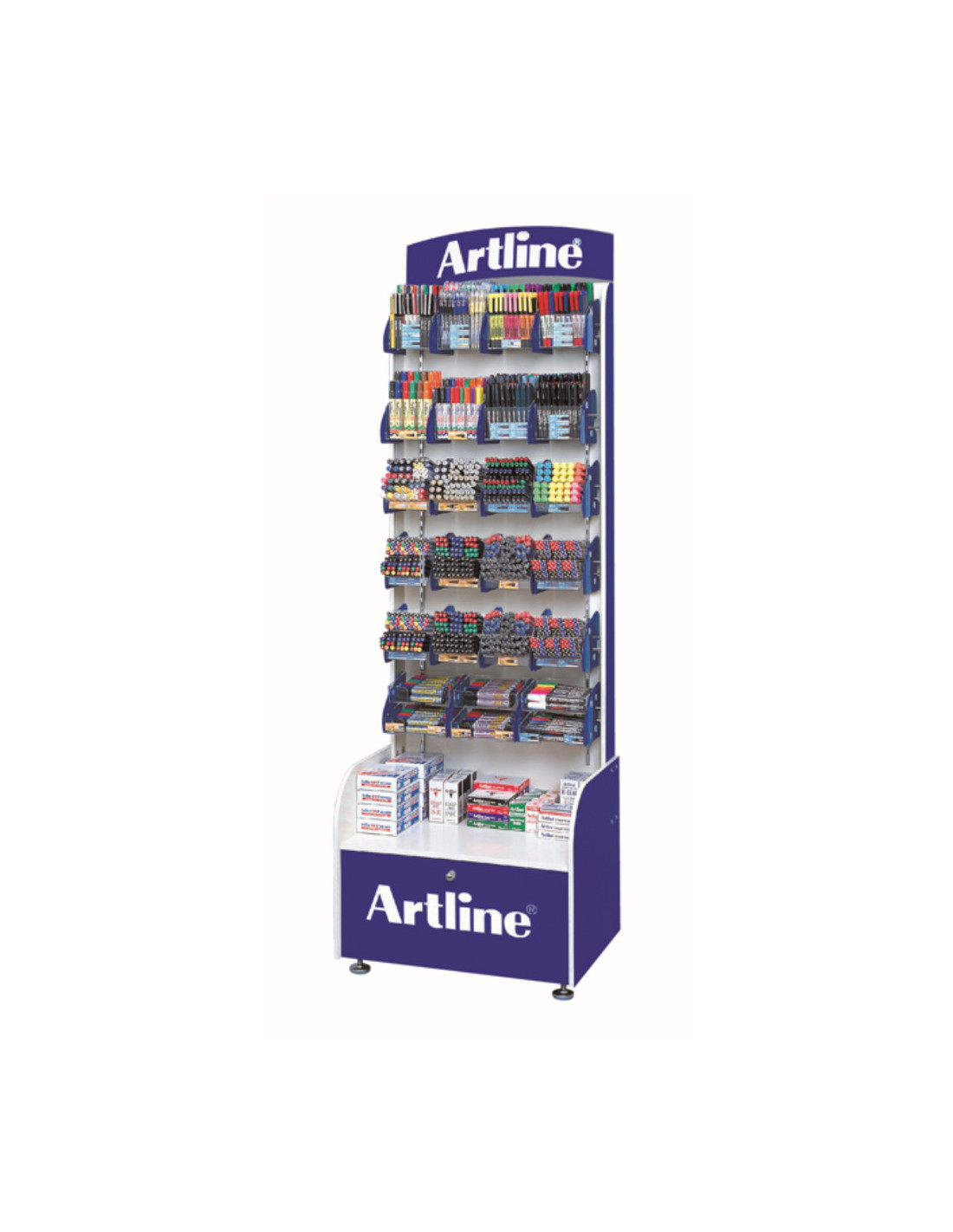Acest display de podea pentru produsele Artline este destinat prezentarii si depozitarii in vrac a pixurilor si markerelor Artline.