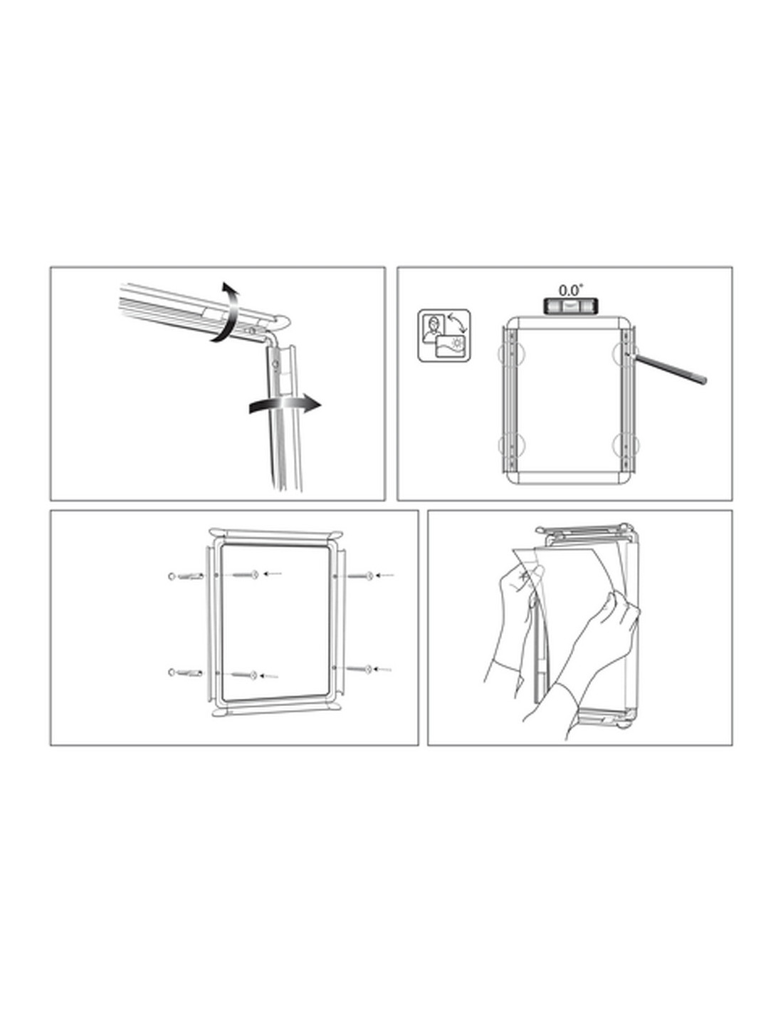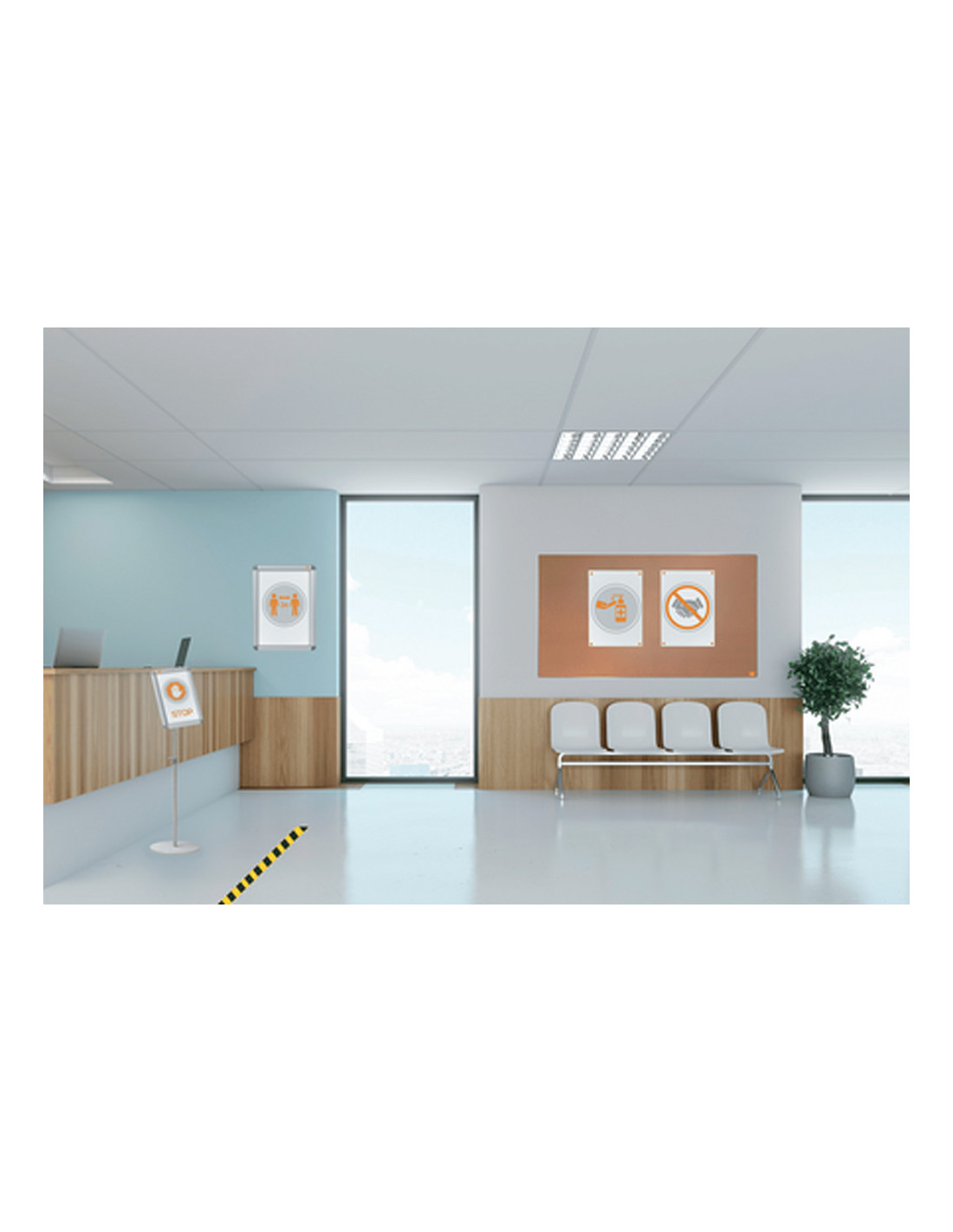 Rama este perfect compatibilă cu suporturile Nobo în formă de A, oferind posibilitatea de a crea un sistem de afișaj complet și profesionist. Este furnizată împreună cu accesoriile necesare montajului pe perete, astfel încât instalarea să fie rapidă și sigură.