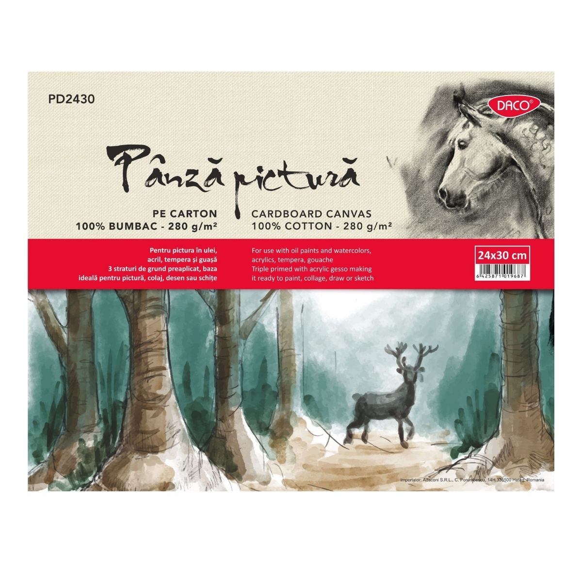 Pânza pentru pictură pe carton DACO, 18×24 cm, este suportul perfect pentru cei care doresc să experimenteze libertatea creației pe o suprafață de calitate, potrivită pentru o gamă variată de tehnici artistice.