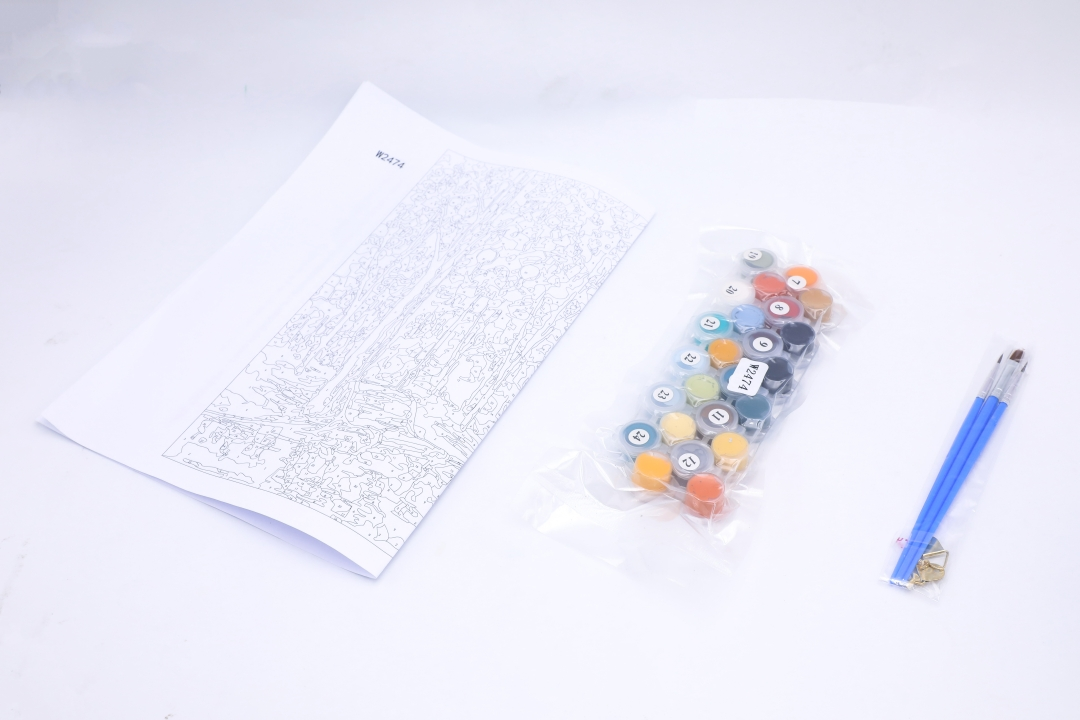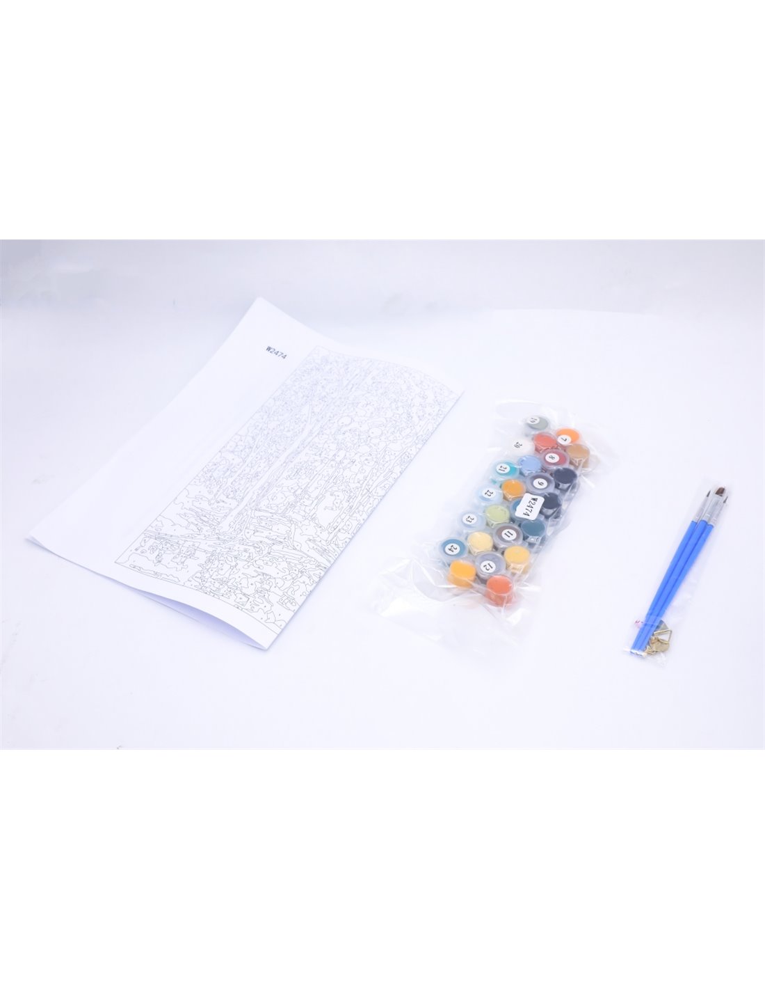 Pânza este printată pe șasiu și numerotată, fiecare zonă corespunzând unei culori incluse în set. Tot ce trebuie să faci este să urmezi pașii și să aplici cele 24 de culori acrilice (3 ml/culoare), folosind cele 3 pensule din păr sintetic puse la dispoziție. Rezultatul final va fi o lucrare expresivă și personalizată. Pânza este realizată din 100% bumbac, cu un gramaj de 280 g/mp, iar șasiul din lemn, cu grosime de 1,7 cm și lățime de 2,4 cm, garantează stabilitate și durabilitate. În plus, setul include 2 agățători pentru prindere pe perete, pentru a expune cu mândrie tabloul realizat.