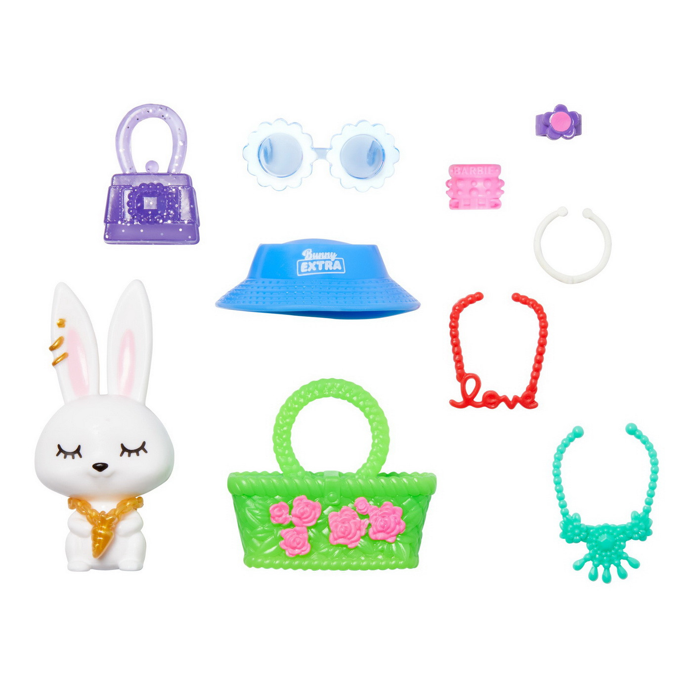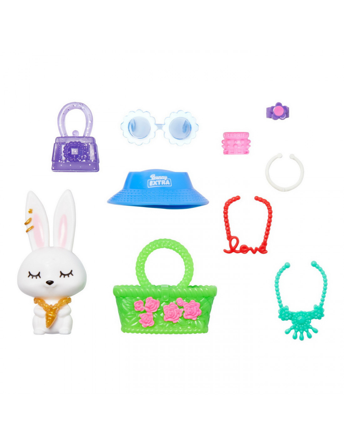 Culorile si decoratiunile pot varia.&bullCand vine vorba de moda, papusile Barbie® Extra au o atitudine &bdquomai mult inseamna mai mult&rdquo, cu 15 piese care includ imbracaminte si accesorii de moda, precum si un animal de companie si accesorii pentru animalul de companie.&bull Coafura papusii Barbie® este la scara mare, cu par blond foarte lung cu detaliu de impletitura si inimioare mov foarte cool peste tot.&bull Îsi expune stilul increzator intr-o bluza de culoare aprinsa cu imprimeu floral, pantaloni scurti asortati din denim cu volane, un poncho flower-power translucid si ghete albe pana la glezne.&bull Accesoriile includ o geanta cos de picnic, ochelari de soare cu flori de inspiratie retro si multe bijuterii exagerate distractive pentru a incuraja exprimarea de sine si distractie cu povesti.&bull Animalul sau de companie iepuras este vai-ce-Extra, cu palarie detasabila, bijuterii aurii voluminoase si o expresie adorabila.&bull Papusile Barbie® Extra sunt cadouri excelente pentru copii cu varste intre 3 si 10 ani, in special pentru cei carora le place sa fie chiar ei extra!