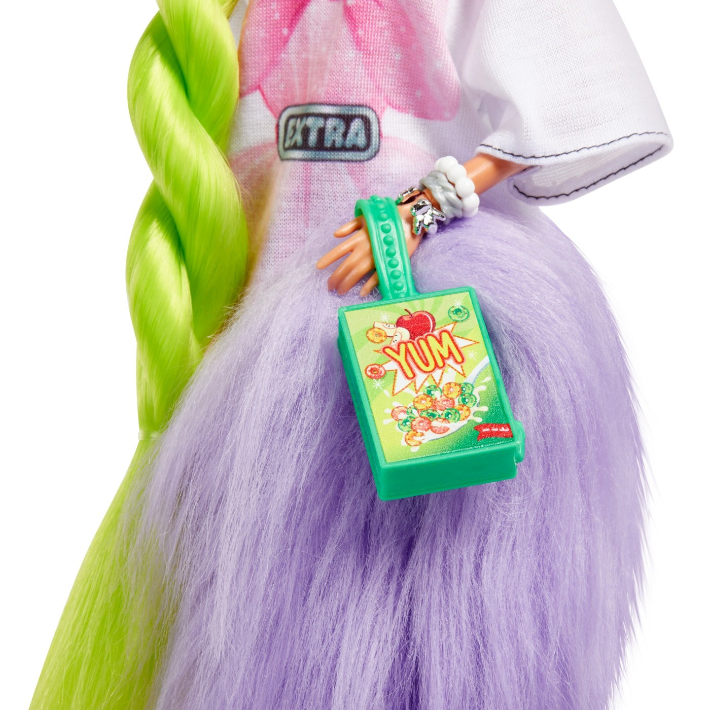 Culorile si decoratiunile pot varia.Cand vine vorba de moda, papusile Barbie Extra au o atitudine &bdquomai mult inseamna mai mult&rdquo, cu 15 piese care includ imbracaminte si accesorii de moda, precum si un animal de companie si accesorii pentru animalul de companie.Papusa Barbie etaleaza machiaj cu imprimeu de stele si par verde-neon foarte lung coafat intr-o coada rasucita fermecatoare.Îsi expune stilul increzator intr-o rochie-tricou supradimensionata cu grafica, colanti negri cu siret si un sal blanos impresionant.Accesoriile includ o geanta distractiva in forma de cutie de cereale, ochelari de soare cu detalii de perle, multe bijuterii si o coronita GIRLS ROCK pentru a incuraja exprimarea de sine si distractie cu povesti.Animalul sau de companie papagal este vai-ce-Extra, cu o pereche de ochelari de soare in forma de inimioara, o expresie adorabila si doua accesorii cutie de cereale.Papusile Barbie Extra sunt cadouri excelente pentru copii cu varste intre 3 si 10 ani, in special pentru cei carora le place sa fie chiar ei extra!