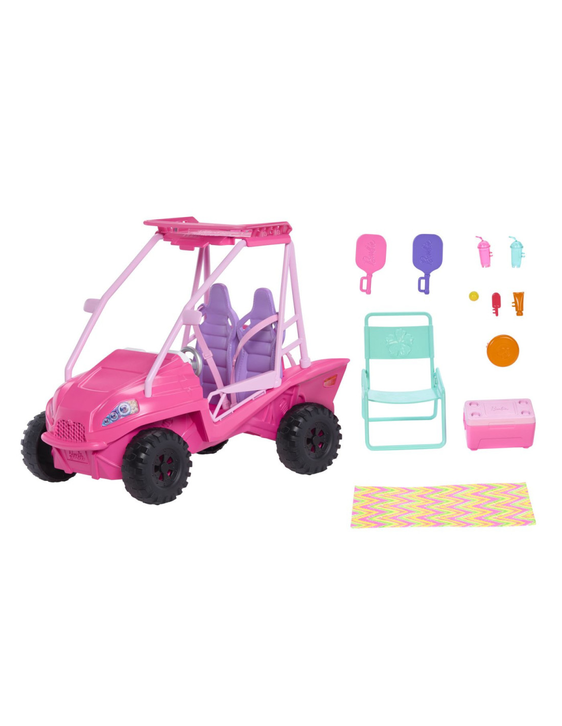 Inspirata de serialul de succes, aceasta masinuta sportiva pentru plaja transporta fanii la tarm, avand un exterior roz aprins, un portbagaj pe acoperis si locuri pentru pana la patru papusi (se vand separat).