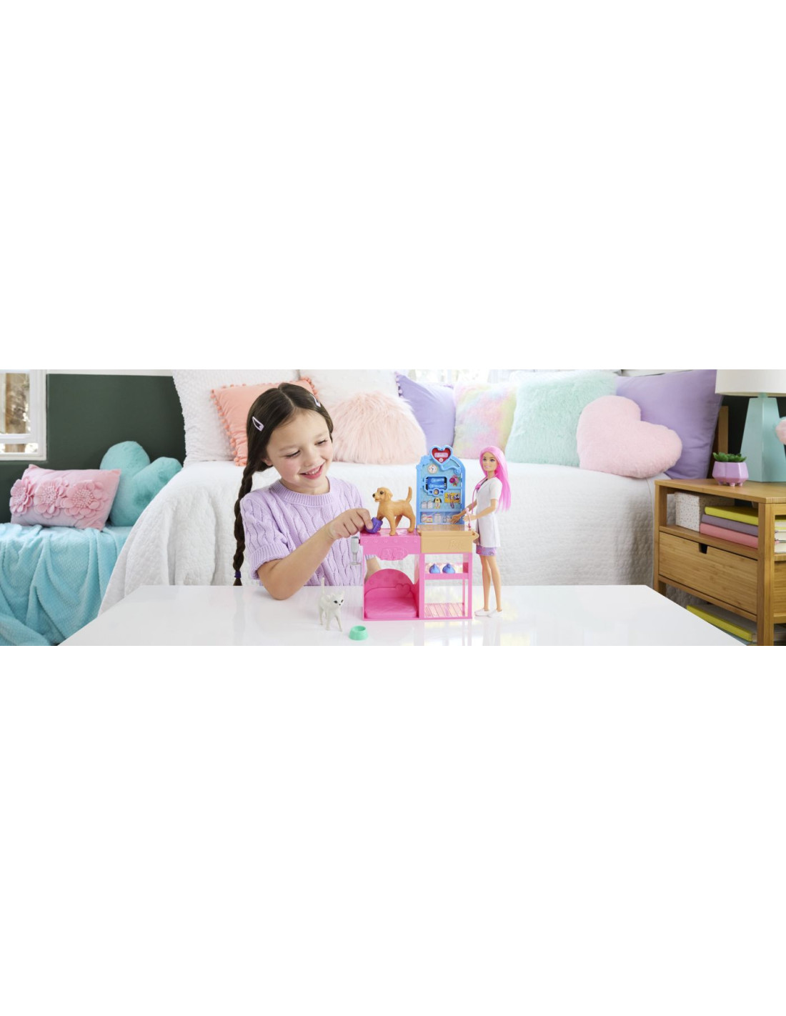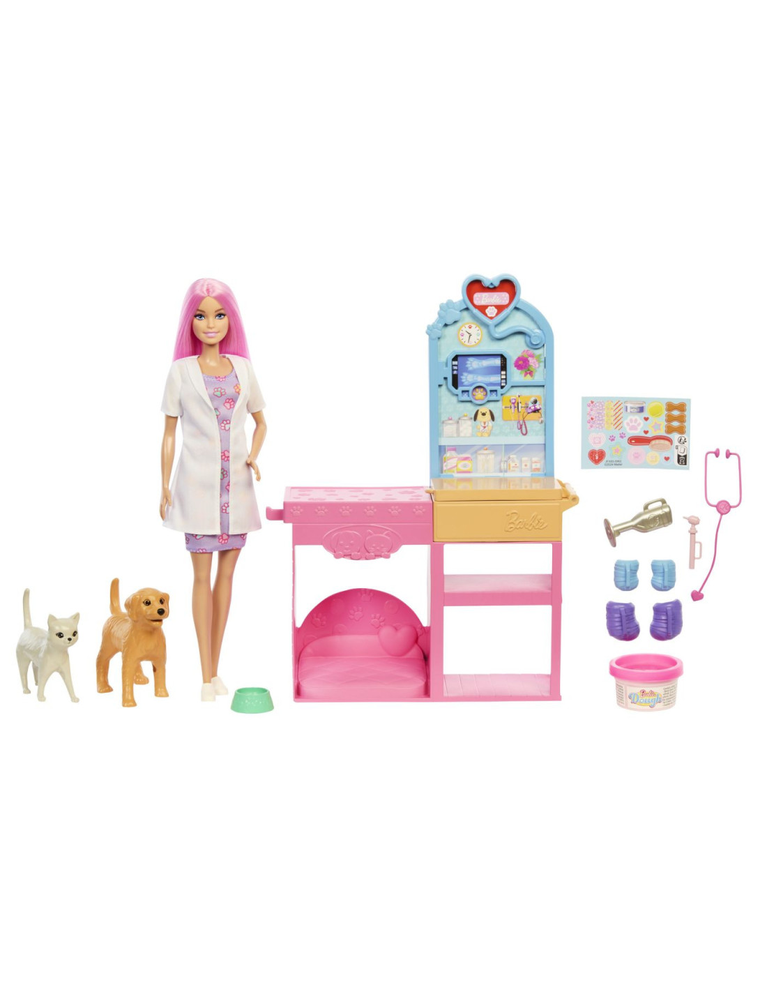 Acest set complet include o papusa Barbie veterinar, un catel, o pisica si peste 10 accesorii care transforma joaca intr-o experienta educativa si distractiva.