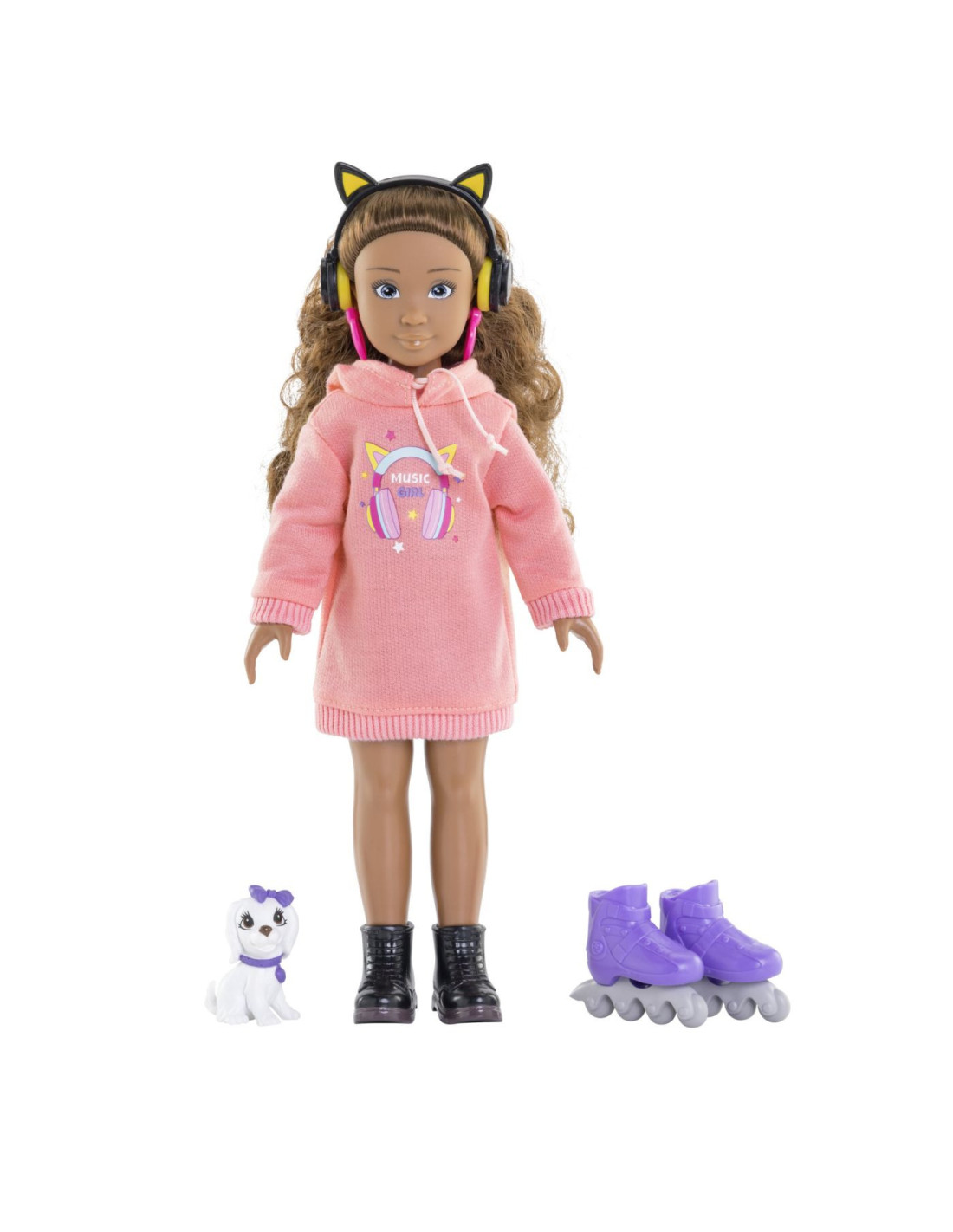Setul Muzica si Moda o include pe Melody, o papusa de moda de 28 cm si 4 accesorii.