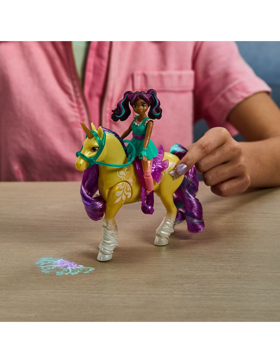 Ava vine cu 7 puncte de articulatie si poate fi pozitionata pentru a-si calari unicornul, Leaf, pentru o joaca imaginativa.