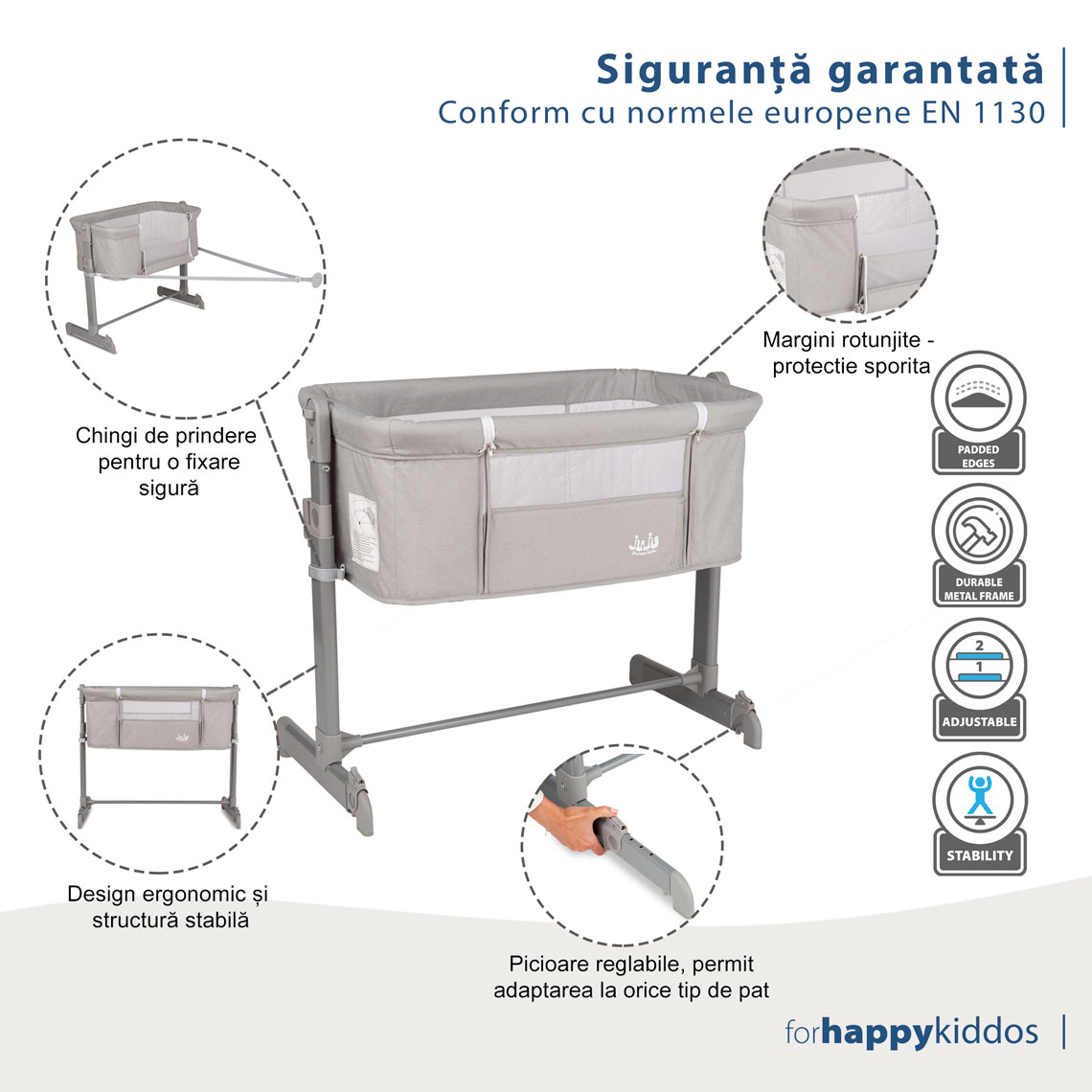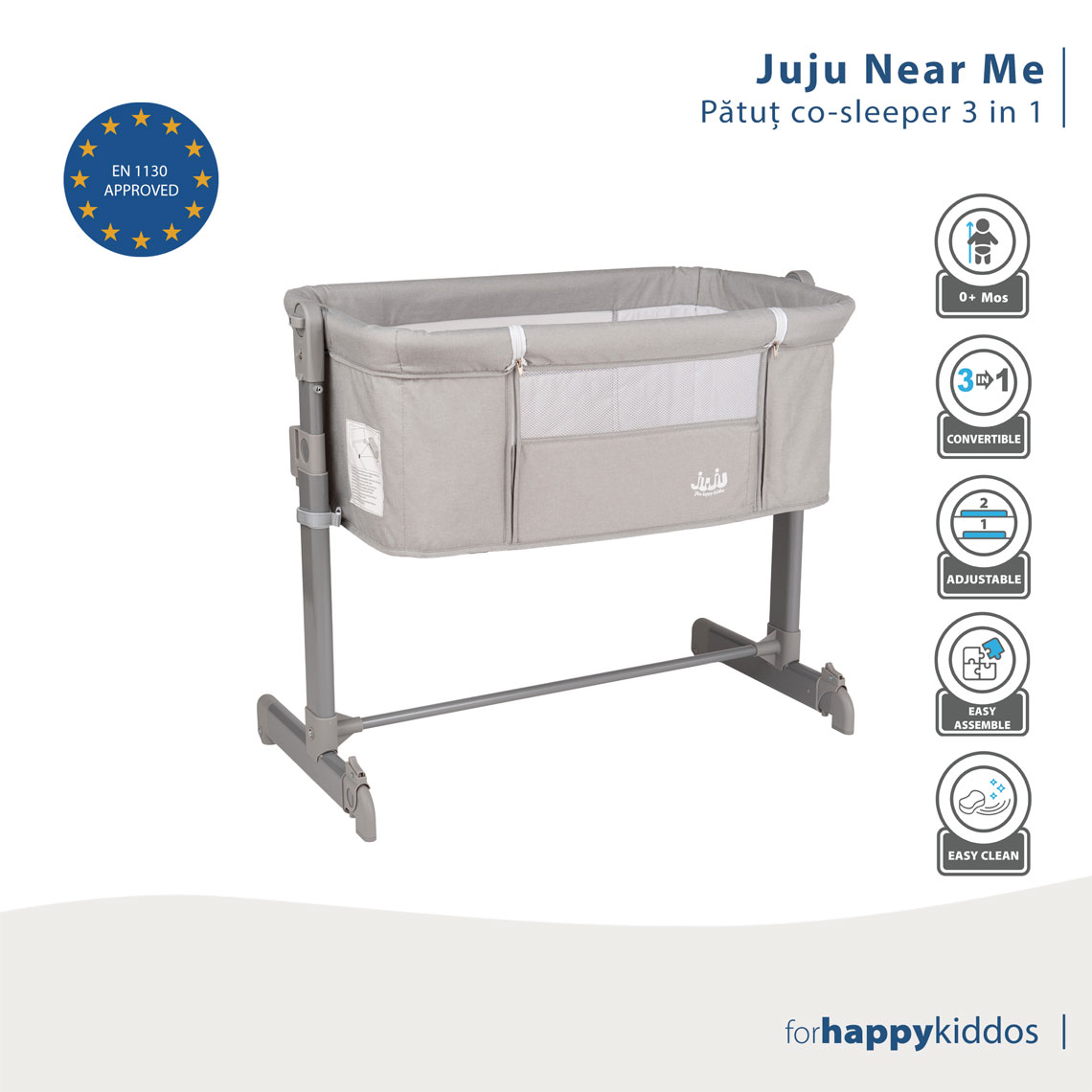 Certificat EN 1130: Pătuțul nostru respectă cele mai riguroase standarde europene de siguranță, garantate de certificarea EN 1130. Asta înseamnă că poți sta liniștit, știind că bebelușul tău e într-un mediu sigur și testat
