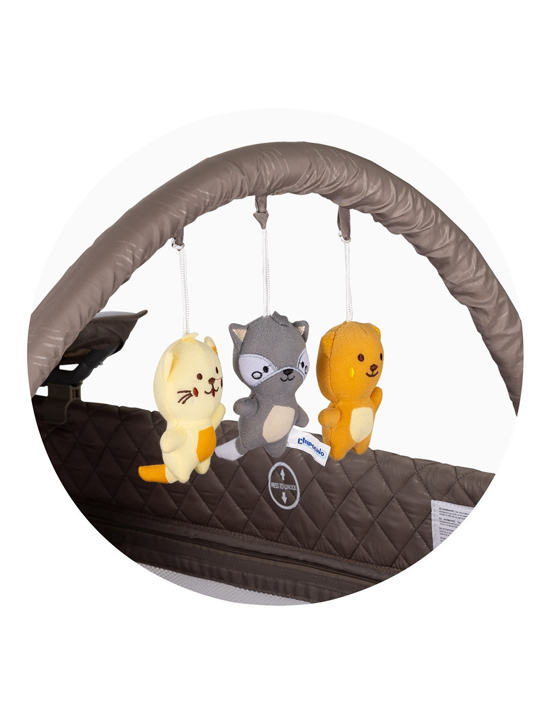 - Bara de jucarii cu trei jucarii de plus pentru a distra copilul