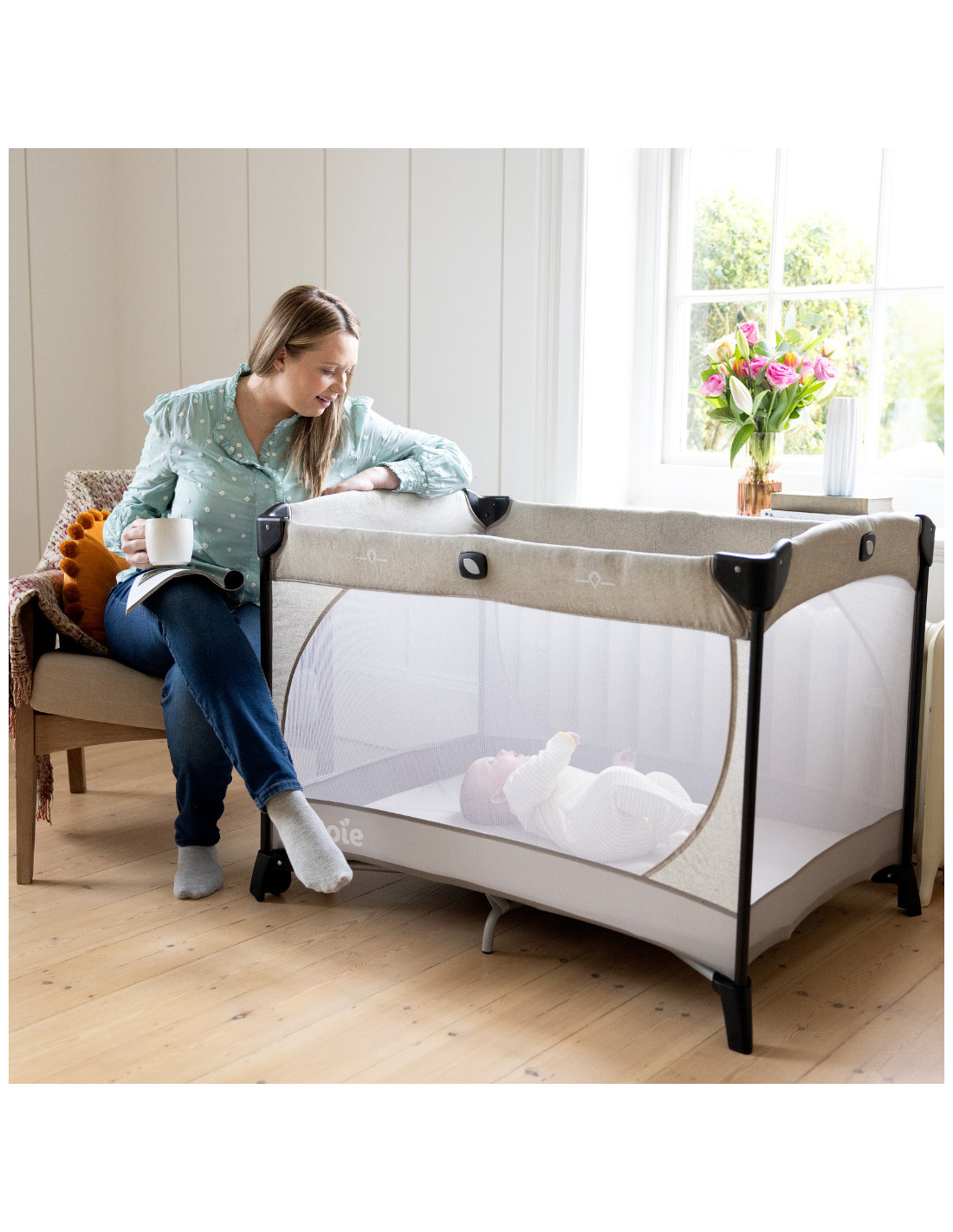 Cele patru laturi din plasa permit o vizibilitate completa si asigura circulatia aerului, mentinand bebelusul confortabil.
