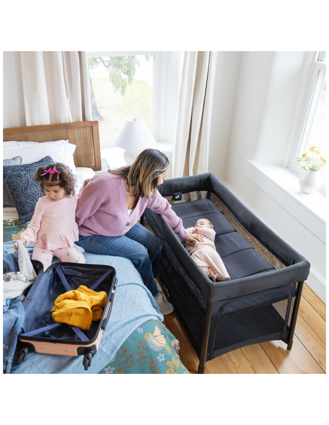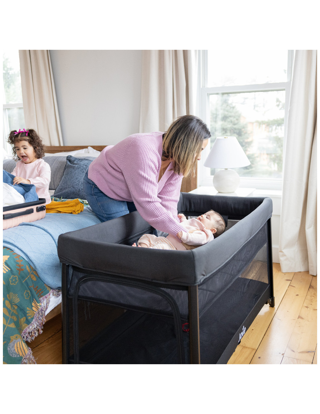 Joie amigo™ este patutul de calatorie creat pentru parinti activi si bebelusi fericiti. Fie ca esti acasa sau plecat in vacanta, ofera-i micutului tau un spatiu sigur pentru somn si joaca. Se pliaza compact cu o singura mana si vine cu geanta de transport inclusa – totul pentru calatorii simple si momente de relaxare fara griji..