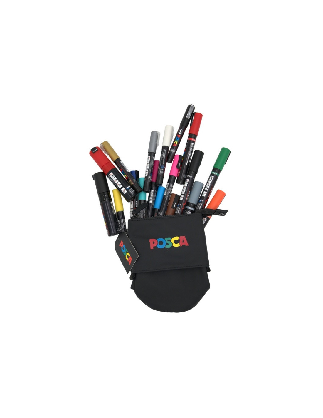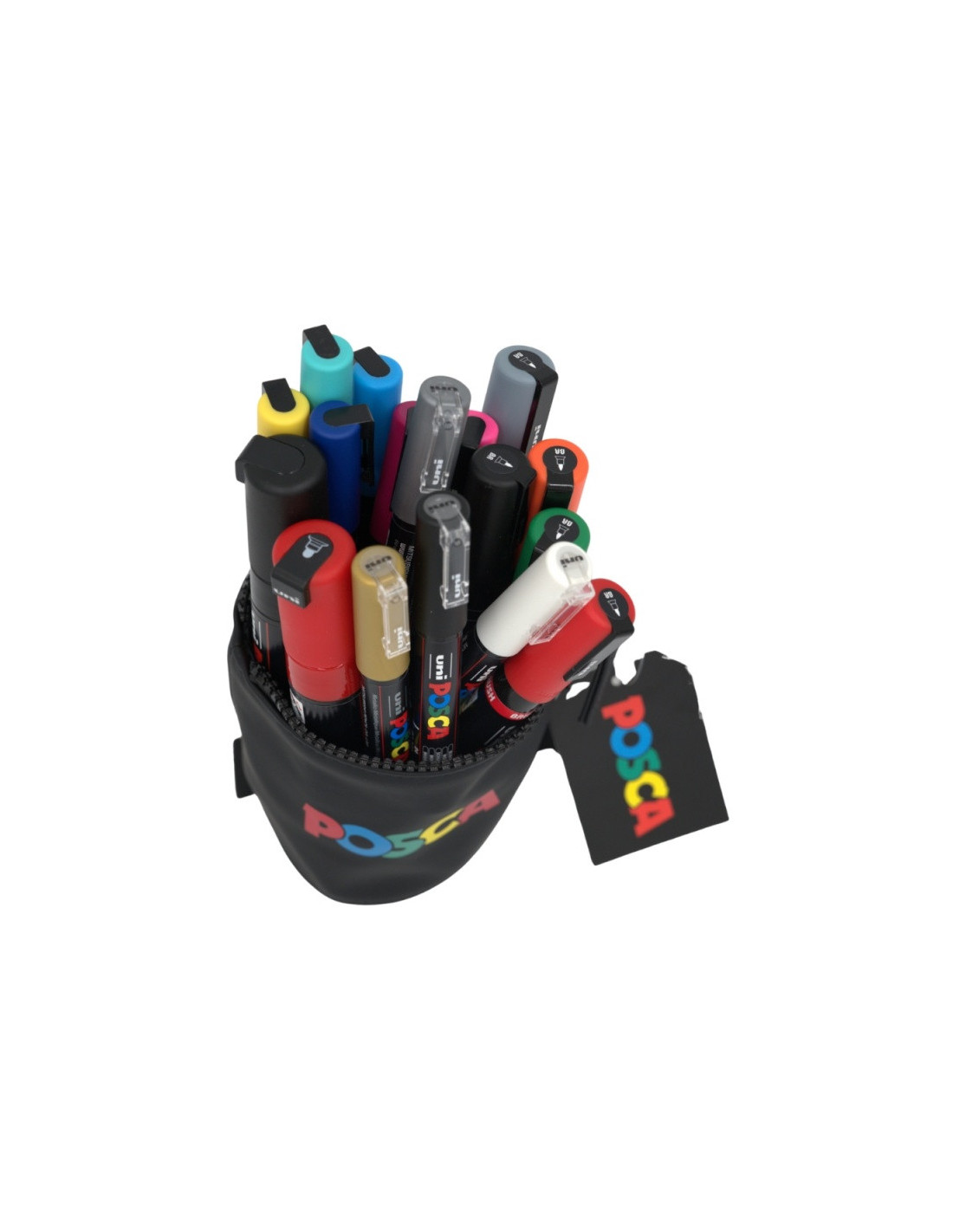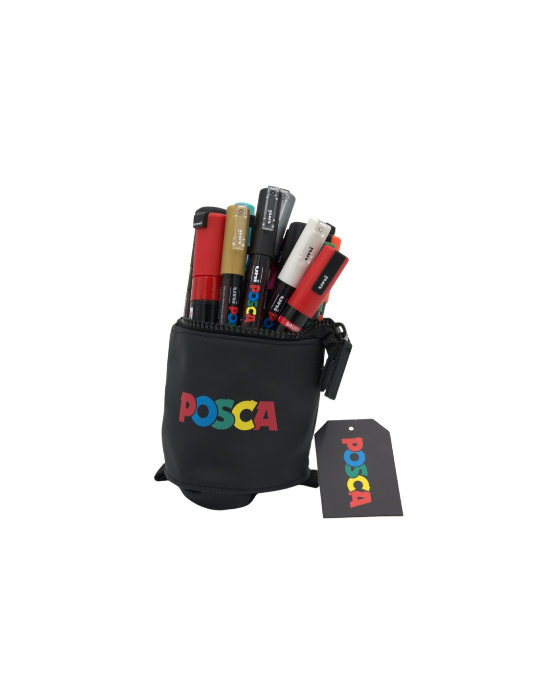 Penar echipat UNI Posca, Stand UP, cilindric, 1 fermoar, negru, 18buc