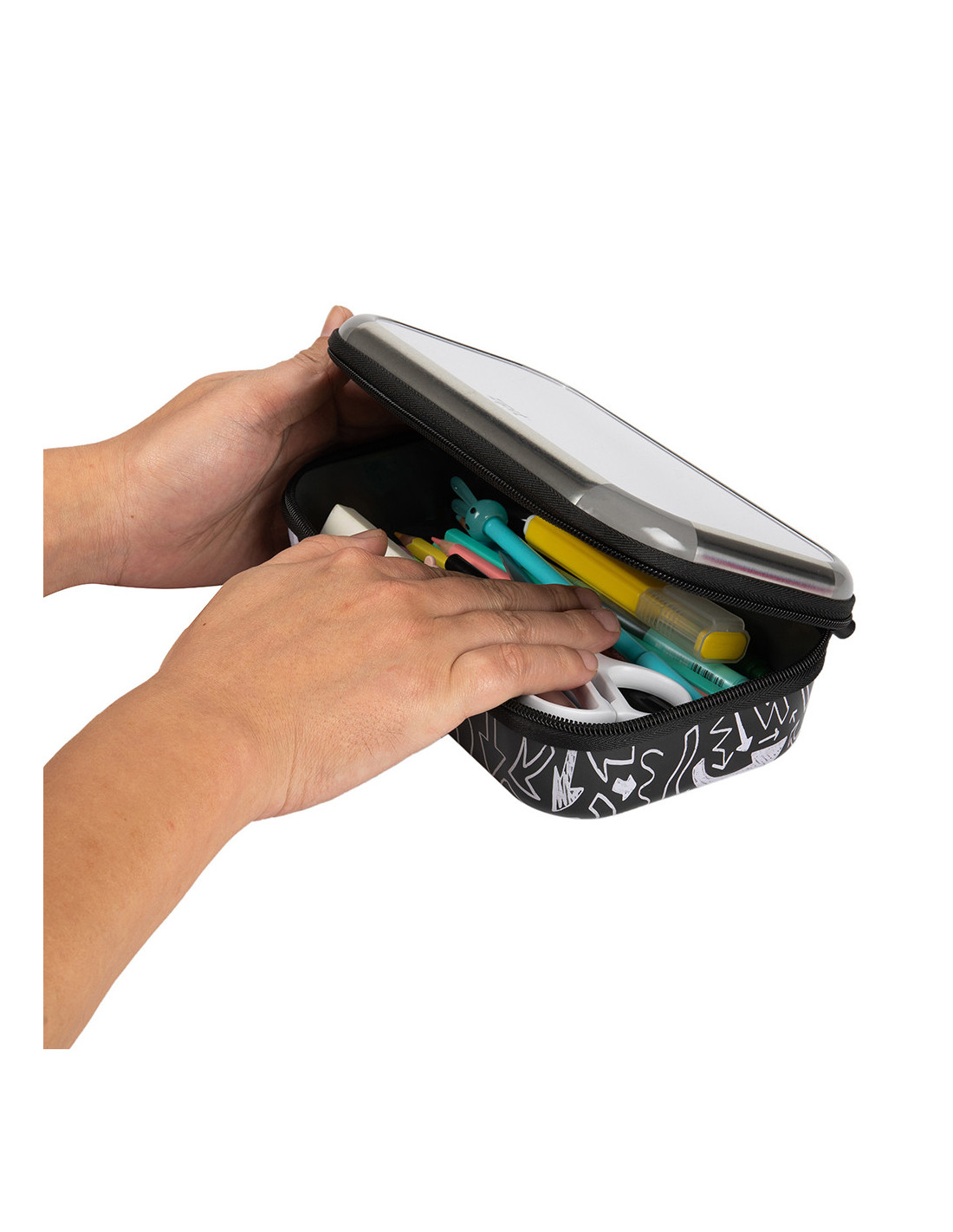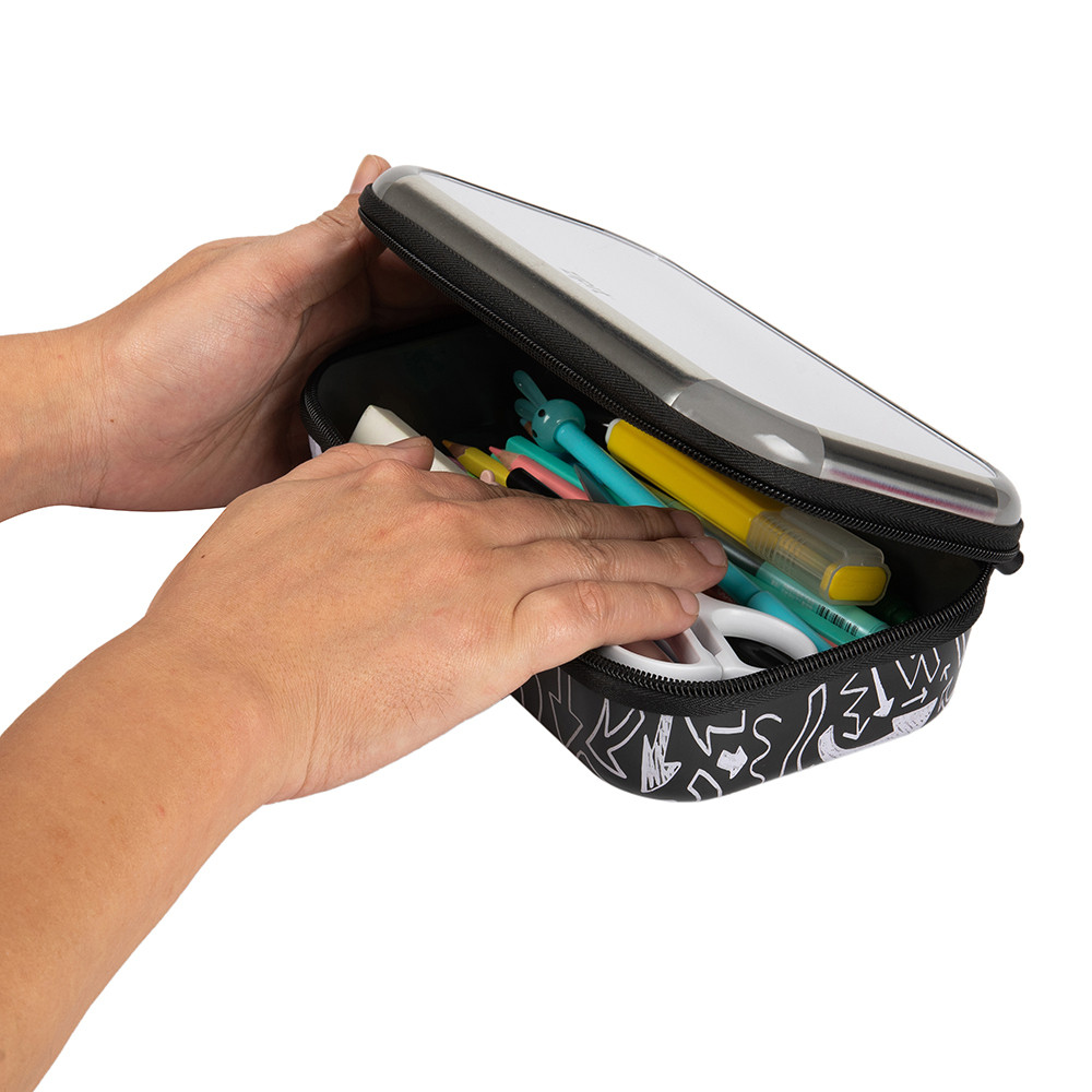 Exteriorul rigid protejează eficient instrumentele de scris și accesoriile, prevenind deteriorarea acestora.