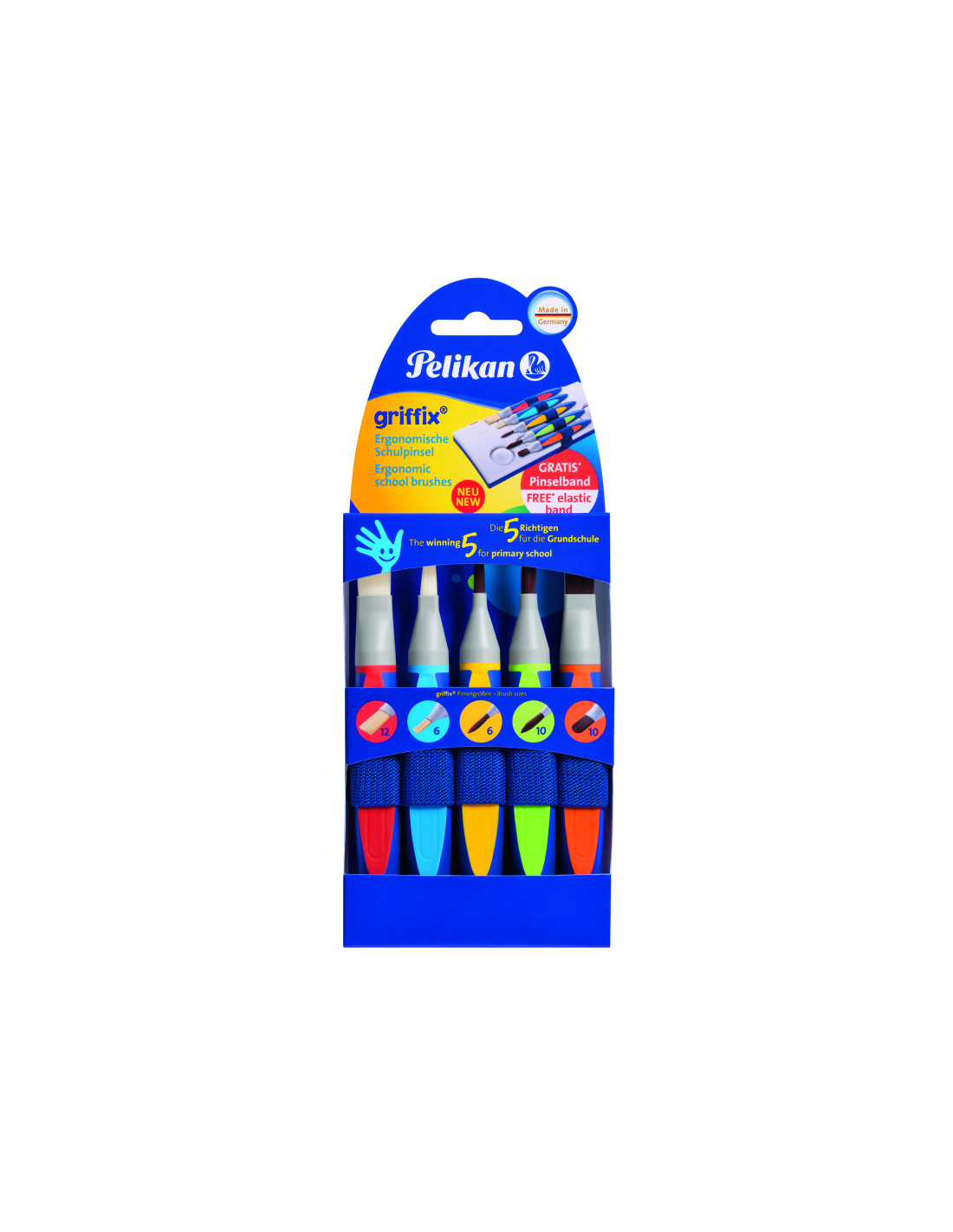 CEI 5 CAMPIONIPENTRU CLASELE PRIMARE Setul de pensule griffix® de la Pelikan este modul cel mai sigur de a pregati elevii din clasele primare pentru cursurile de desen. Fiecare pensula din set are alta specialitate, astfel copiii vor fi gata sa invete o varietate de tehnici de pictura - in mod placut si jucaus, alaturi de cei cinci campioni la pictura, neintrecuti in intreaga galaxie. griffix® este setul perfect de pensule pentru orice elev din clasele primare! Fabricate in Germania!HAIDETI SA-I CUNOASTEM PE CEI 5 CAMPIONI! Pensula nr. 12 cu varf lat si par aspru – Uriasul Uriasul are o prezenta impunatoare si o personalitate pe masura parului aspru - puternica, rezistenta, dar deschisa si versatila, mereu in cautarea distractiei.Chiar daca nu se poate mereu incadra in linii prestabilite, se pricepe cel mai bine sa amestece culori si sa rezolve rapid problemele.Peisajele preferate: muntii, marile, si cerul care le uneste.Pensula nr. 10 cu varf rotund si par moale - LunganulLunganul, cum i se mai spune pensulei nr. 10, este un adevarat artist, mereu gata sa contribuie la urmatoarea opera de arta a copiilor. Nu este doar destept si precis, ci si delicat si sensibil – trasaturi esentiale pentru firea sa artistica, ce fac din nr. 10 alegerea perfecta pentru o pictura mai detaliata si mai bine conturata.Ca orice artist, Lunganul adora sa priveasca si sa picteze nori, frunze, flori, si natura in general. Suntem siguri ca nu va va dezamagi daca-i dati o sansa!Pensula nr. 6 cu varf lat si par aspru - DurduliulEste la fel de puternic, rapid si talentat ca si fratii sai mai mari, si pur si simplu adora sa sara in ajutorul prichindeilor de pretutindeni. Oare cine are nevoie de ajutor? Asta se intreaba el in permanenta. Spiritul de echipa si rezolvarea problemelor sunt principalele lucruri care-l anima pe nr. 6, Durduliul! Activitatile sale preferate sunt mixarea culorilor, crearea de texturi si desenarea a diferite peisaje din natura.Pensula nr. 6 cu varf rotund si par moale - MicutulDupa cum se poate usor ghici din porecla sa, Micutul este un pispirel timid, dar in acelasi timp este foarte precis. Micutul acorda foarte mare importanta detaliilor si crede ca acestea dau savoare fiecarei creatii artistice. Indiferent de cat de neinsemnat pare un detaliu, Micutul stie acesta va avea cu siguranta un impact asupra rezultatului final. Elementele preferate ale Micutului intr-o pictura sunt liniile fine, precise, si contururile fetelor.Pensula nr. 10 cu varf limba de pisica - Pisica Ultima dar nu cea din urma!... Fa cunostinta cu pensula griffix nr. 10 - sau mai bine zis, Pisica!Pisica este la fel de vesela si spontana ca si fratii ei mai mari, cu un entuziasm molipsitor in misiunea ei de a veni in ajutorul micilor artisti. Si ce ajutor nepretuit! Pisica noastra este o felina in adevaratul sens al cuvantului, stapanind la perfectie realizarea detaliilor milimetrice si curbelor ce necesita gratie si precizie maxima.Nu va dura mult pana sa-ti dai seama ca Pisica este un prieten descurcaret si versatil, pe care ti-l doresti mereu prin preajma, mai ales ca se poate ocupa de orice problema artistica pe care fratii ei n-o pot rezolva.DE CE ESTE UNIC SETUL DE PENSULE GRIFFIX? 1. Avantajul este in mana ta• Manerul triunghiular ergonomic este special conceput pentru mainile mai micute ale copiilor. • Manerul este usor de manevrat si este acoperit cu o suprafata anti-alunecare. • Materialul plastic din care este realizat este extrem de usor de spalat si de uscat. • Fiecare pensula este dedicata unui alt tip de pictura, fapt identificat prin culorile de pe maner. 2. Varful din par sintetic, esenta pensulelor griffix®• Pensulele sunt realizate cu par sintetic de cea mai buna calitate. • Acesta este rezistent si isi pastreaza forma, fara sa se desprinda din pensula dupa mai multe utilizari. • De asemenea, parul sintetic este foarte usor de curatat si de uscat. 3. Ideale pentru scoala• Nu se rostogolesc pe banca sau pe suprafete inclinate datorita manerului triunghiular. • Alegerea pensulei potrivite este mai usoara datorita culorilor distinctive pentru fiecare tip de pensula. • Calitatea materialelor din care sunt realizate pensulele garanteaza mentinerea lor in conditie buna timp indelungat. • Eticheta pentru nume face ca fiecare pensula sa se intoarca la proprietarul de drept chiar si dupa ce aceasta a fost imprumutata prietenilor. Transportul si depozitarea – mult mai usoareBanda elastica destinata ordonarii si transportului unui set complet de pensule griffix® este accesoriul perfect! Aceasta pastreaza garantat ordinea si ajuta la mentinerea unui spatiu de lucru curat alaturi de celelalte accesorii pentru pictura cum ar fi recipientele pentru apa de la Pelikan. Nu a fost niciodata atat de usor sa pastrezi ordinea si curatenia, pe banca sau acasa. Caracteristici• Par sintetic• Maner triunghiular ergonomic• Dimensiuni adecvate mainilor copiilor• Include eticheta pentru nume. • Perfect pentru copiii de scoala primara, datorita versatilitatii fiecarei pensule si manerului ergonomic special, adecvat dimensiunilor mai mici ale mainilor copiilor• Usor de manevrat si prevazut cu o suprafata anti-alunecare. • Atat manerul de plastic cat si parul pensulei se spala si se usuca foarte usor dupa utilizare. • Culorile diferitelor pensule din setul griffix® permit selectarea pensulei potrivite pentru fiecare cerinta.• Sunt o completare perfecta a sistemului invata-sa-scrii de la Pelikan, deoarece pictura are un rol crucial in dezvoltarea si rafinarea capacitatilor motorii ale copiilor. • Forma ergonomica sprijina deprinderea pozitiei corecte de prindere a instrumentelor de scris si de scriere, fiind astfel un ajutor indirect pentru procesul de invatare a scrisului de mana. Setul de 5 pensule griffix®, include: nr. 12 si nr. 6 cu varf lat, nr. 6 si nr. 10 cu varf rotund, nr. 10 cu varf tip limba de pisica. Mai include o banda elastica pentru gruparea si transportarea pensulelo