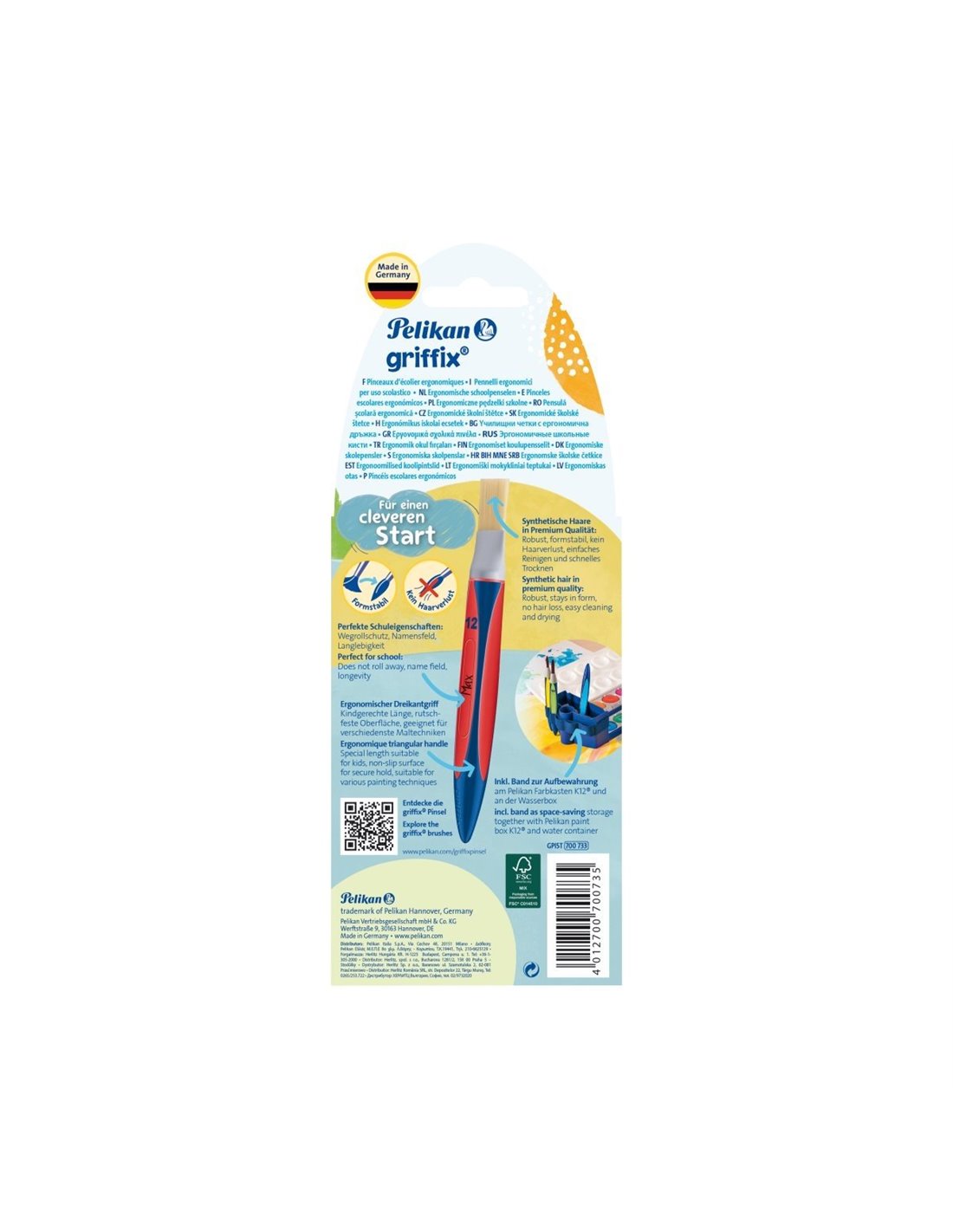 Fabricate în Germania, pensulele griffix® oferă calitate superioară și durabilitate, fiind realizate din păr sintetic premium care își păstrează forma și este ușor de curățat. Mânerul triunghiular ergonomic, cu suprafață anti-alunecare, este perfect adaptat mâinilor mici ale elevilor, oferind confort, precizie și o postură corectă de prindere.