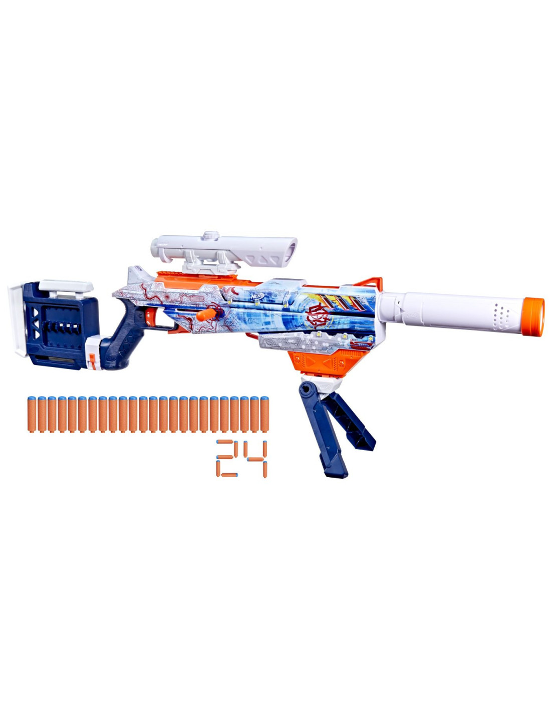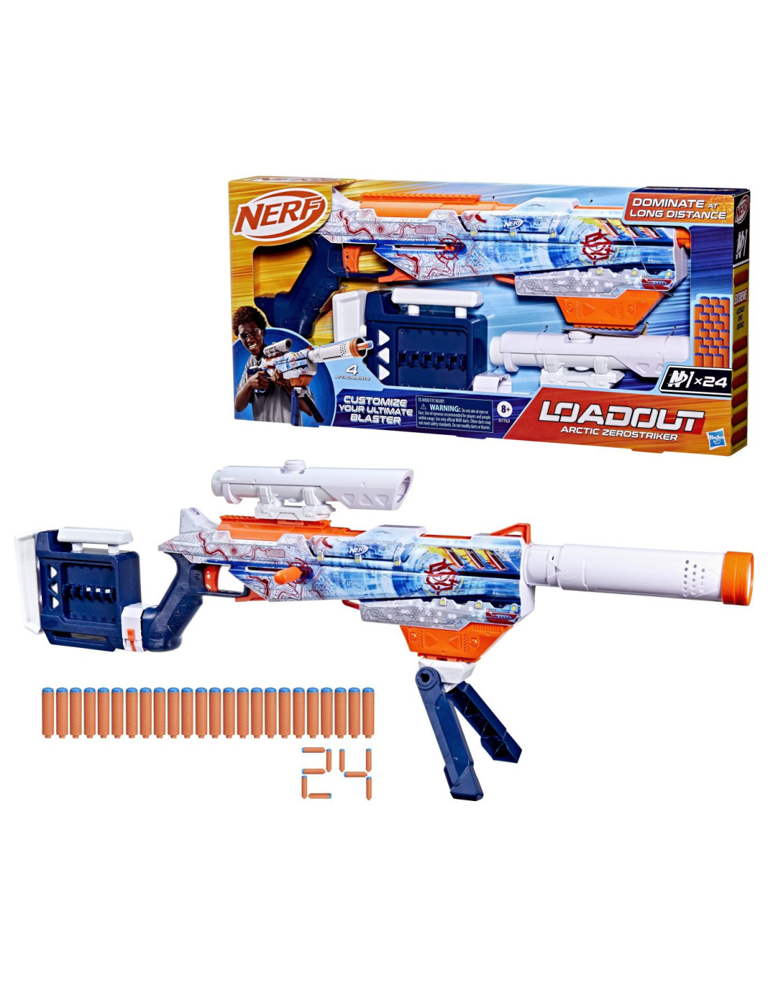 Pistolul Nerf Loadout Arctic Zerostriker include 24 de sageti Nerf N1 concepute pentru precizie, viteza si distanta extrema.