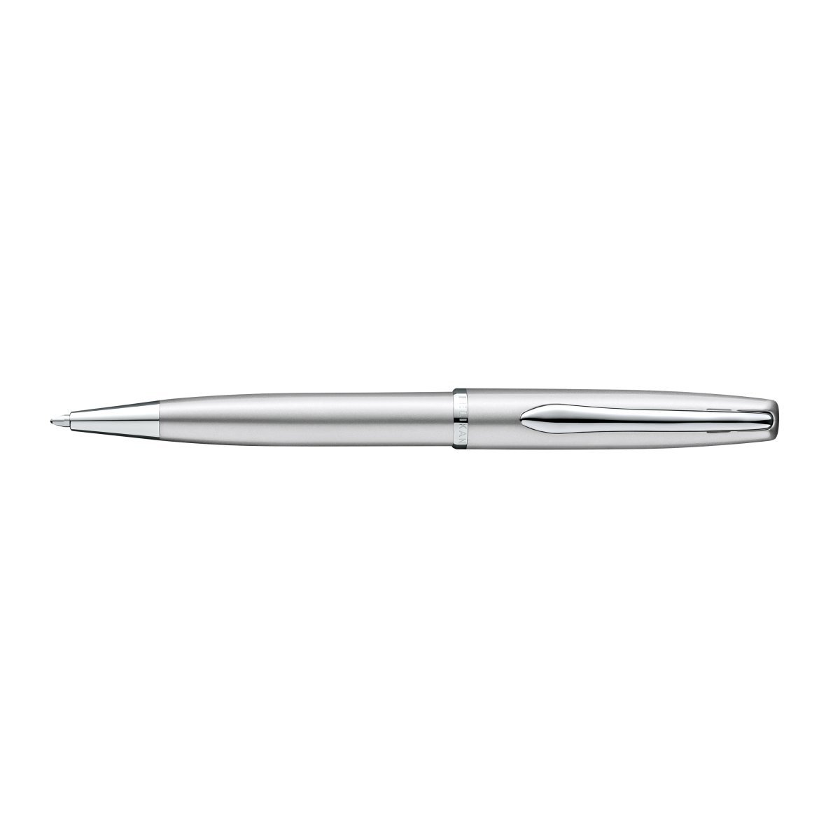 Corpul superior și inferior al pixului este lacuit într-o nuanță argintie perlată, care se îmbină perfect cu elementele metalice cromate – vârful, inelul central și clipsul de prindere. Acesta din urmă are forma distinctivă de cioc de pelican și este prevăzut cu un mecanism pe bază de arc, care îi oferă flexibilitate și durabilitate în utilizarea zilnică.