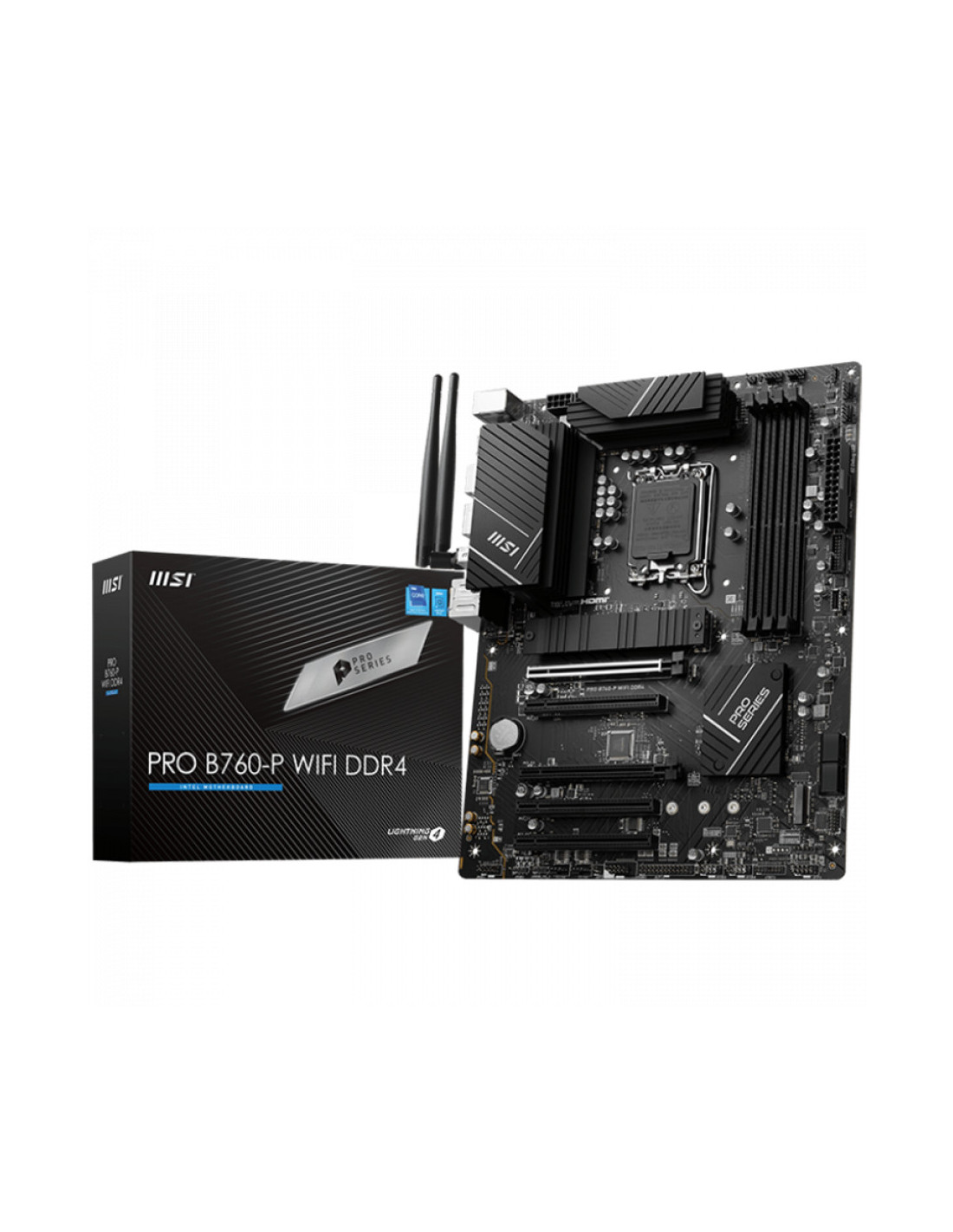 MSI PRO B760-P WIFI DDR4, ATX, Socket 1700, Dual Channel DDR4 5333(OC)MHz, 2x PCIe x16 slots, 2x M.2 slots, 1x HDMI, 1x DP, 1x USB 3.2 Gen 2x2 Type-C, 3x USB 3.2 Gen 2, 4x USB 2.0, 7.1 HD Audio, 2.5Gbps LAN, WI-FI 6E, BT, 3Y "PRO_B760-P_WIFI_DDR4"