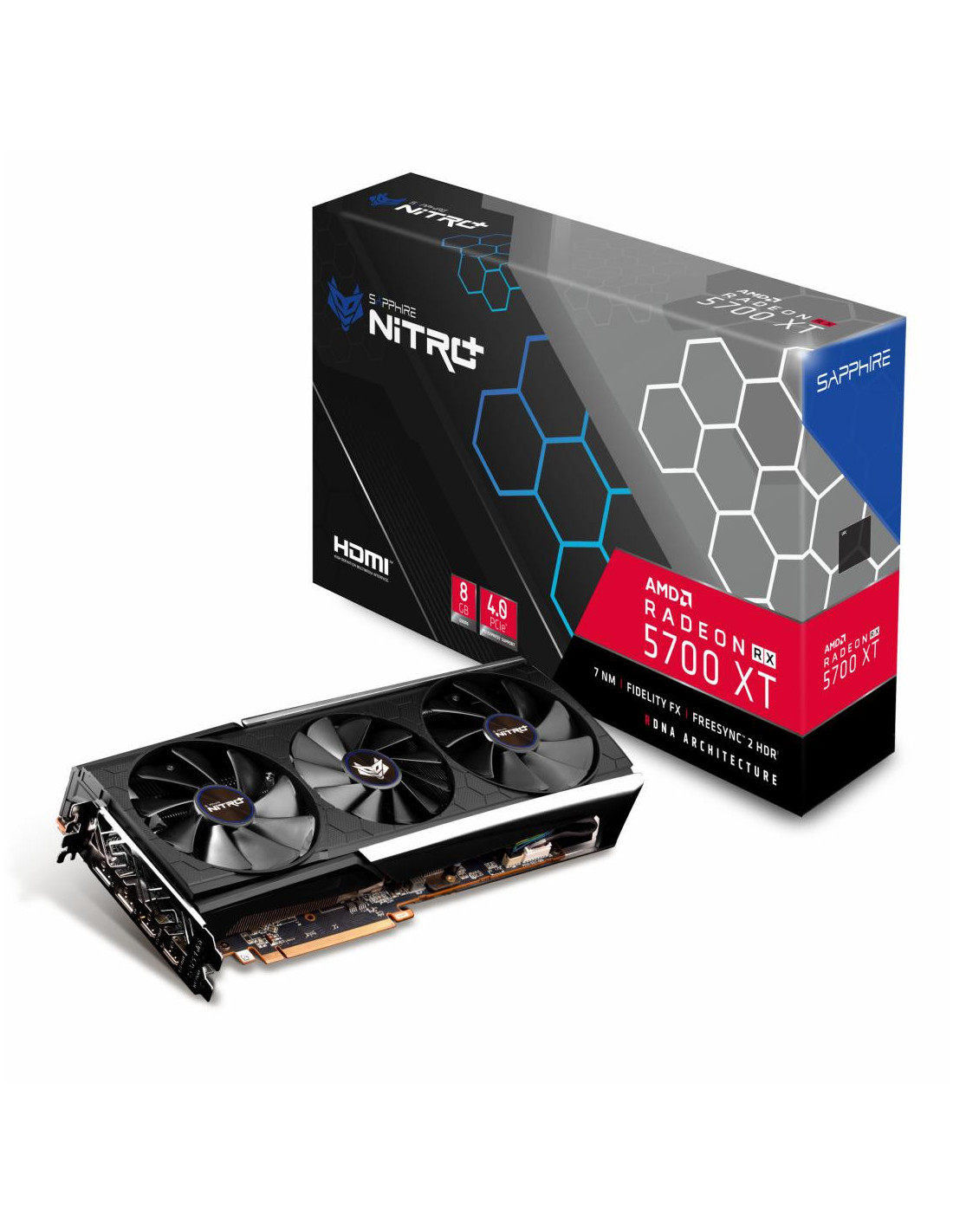 Placa video Sapphire, Radeon RX 5700 XT Nitro+ Engine clock: Boost Clock: Up to 2010MHz, Game Clock: Up to 1905 MHz, Stream Processors: 2560, Memory: 8GB GDDR6, 256-bit, Memory clock: 14 Gbps, PCI-Express 4.0, 2x HDMI, 2x DisplayPort.