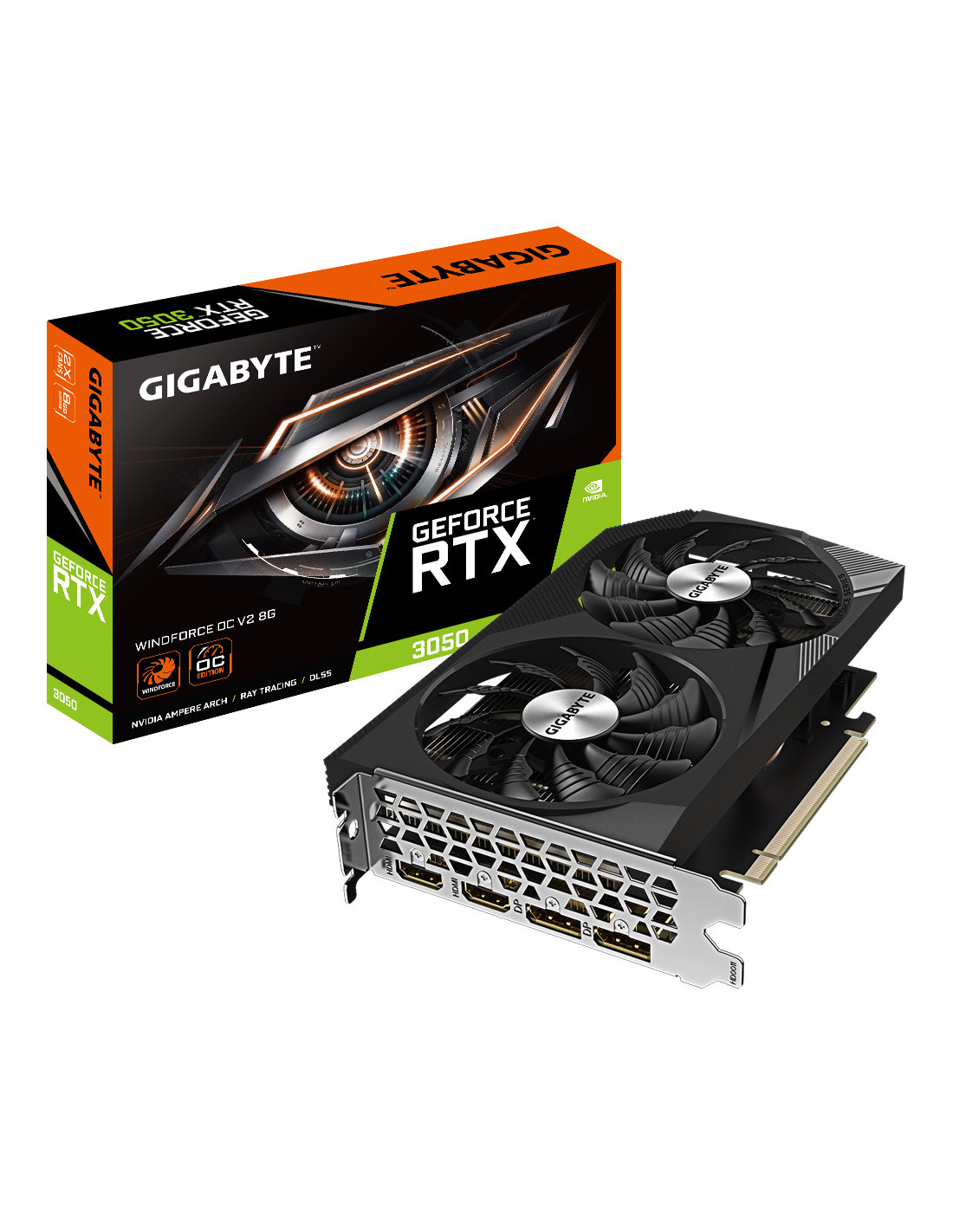 Gigabyte GeForce RTX 3050 WINDFORCE OC V2 8G, GeForce RTX 3050, 8 Giga Bites, GDDR6, 128 bit, 7680 x 4320 Pixel, PCI Express 4.0