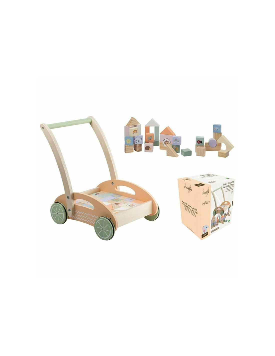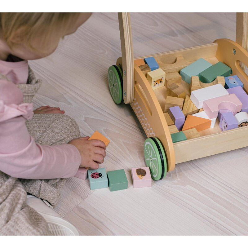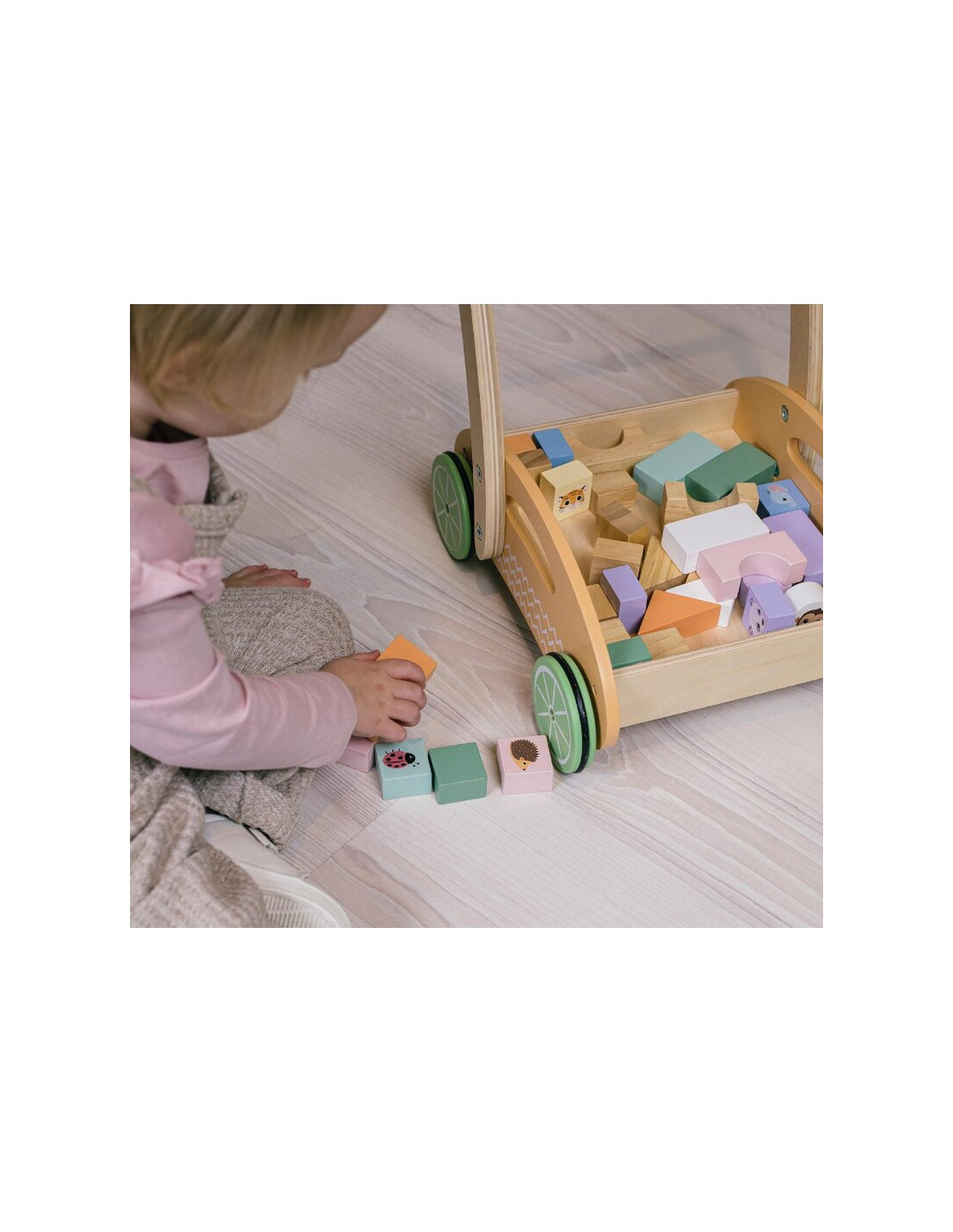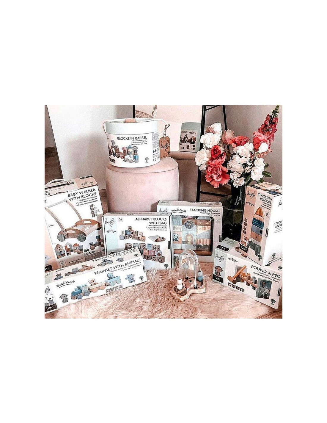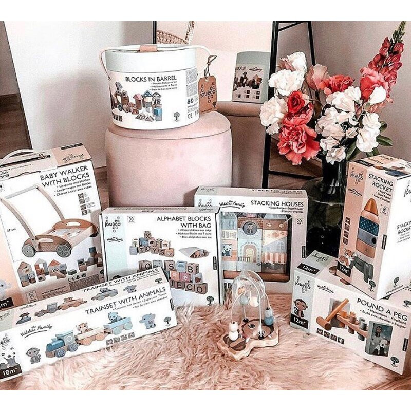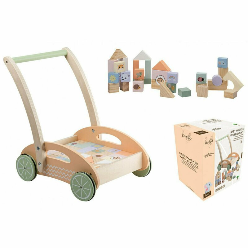 Joueco - Antepremergator cu 34 de cuburi, Familia Wildies, Din lemn certificat FSC, 12 luni+, Multicolor