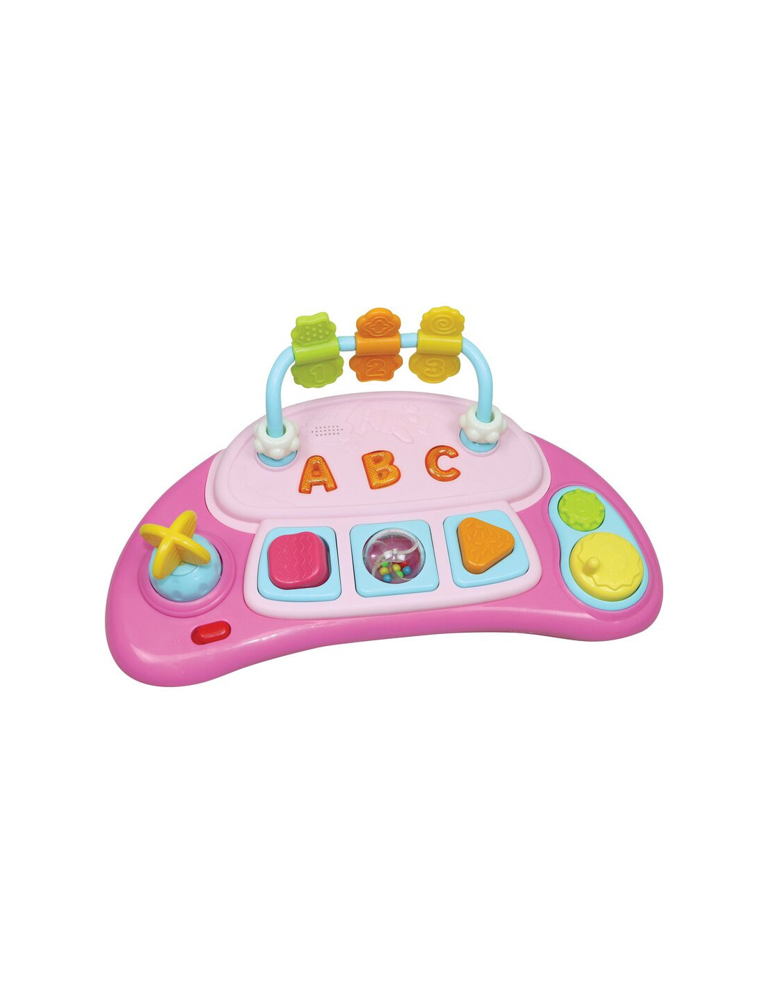 - Premergatorul ABC este prevazut cu o tava dinamica si jucarie muzicala, iar efectele de lumina permit copilului sa invete despre forme, suprafete, culori si sunete.
