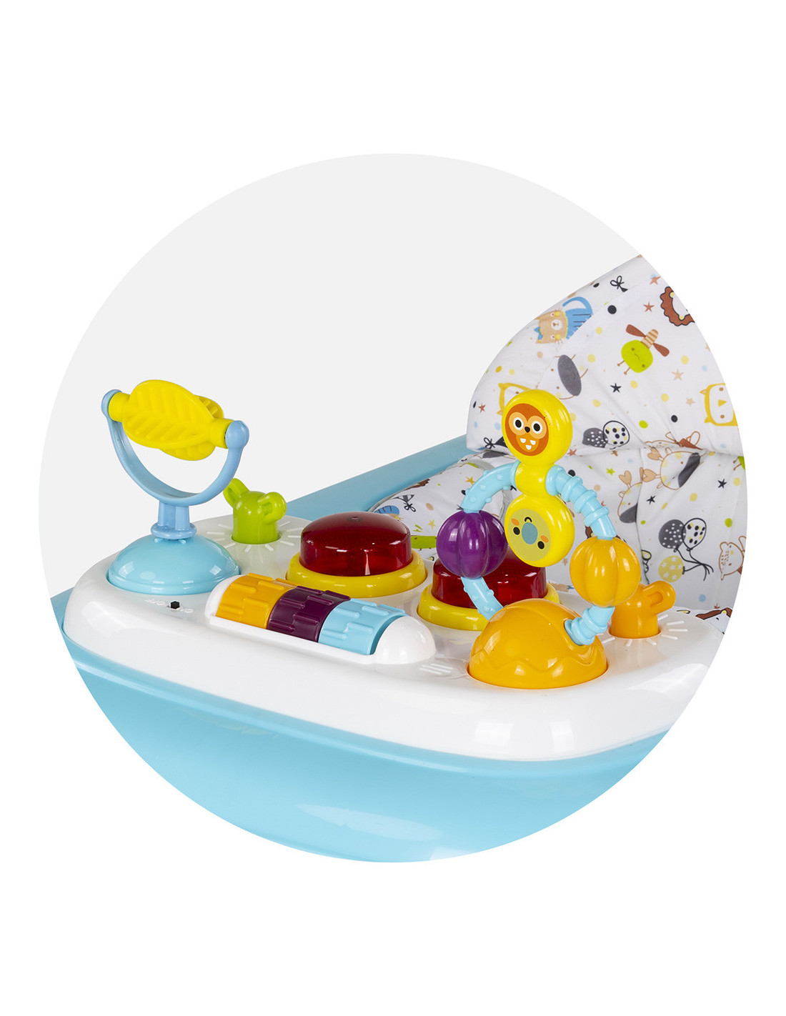 - Panou de joaca distractiv cu jucarii colorate, butonane si lumine - stimuleaza abilitatile motorii fine si dezvoltarea senzoriala