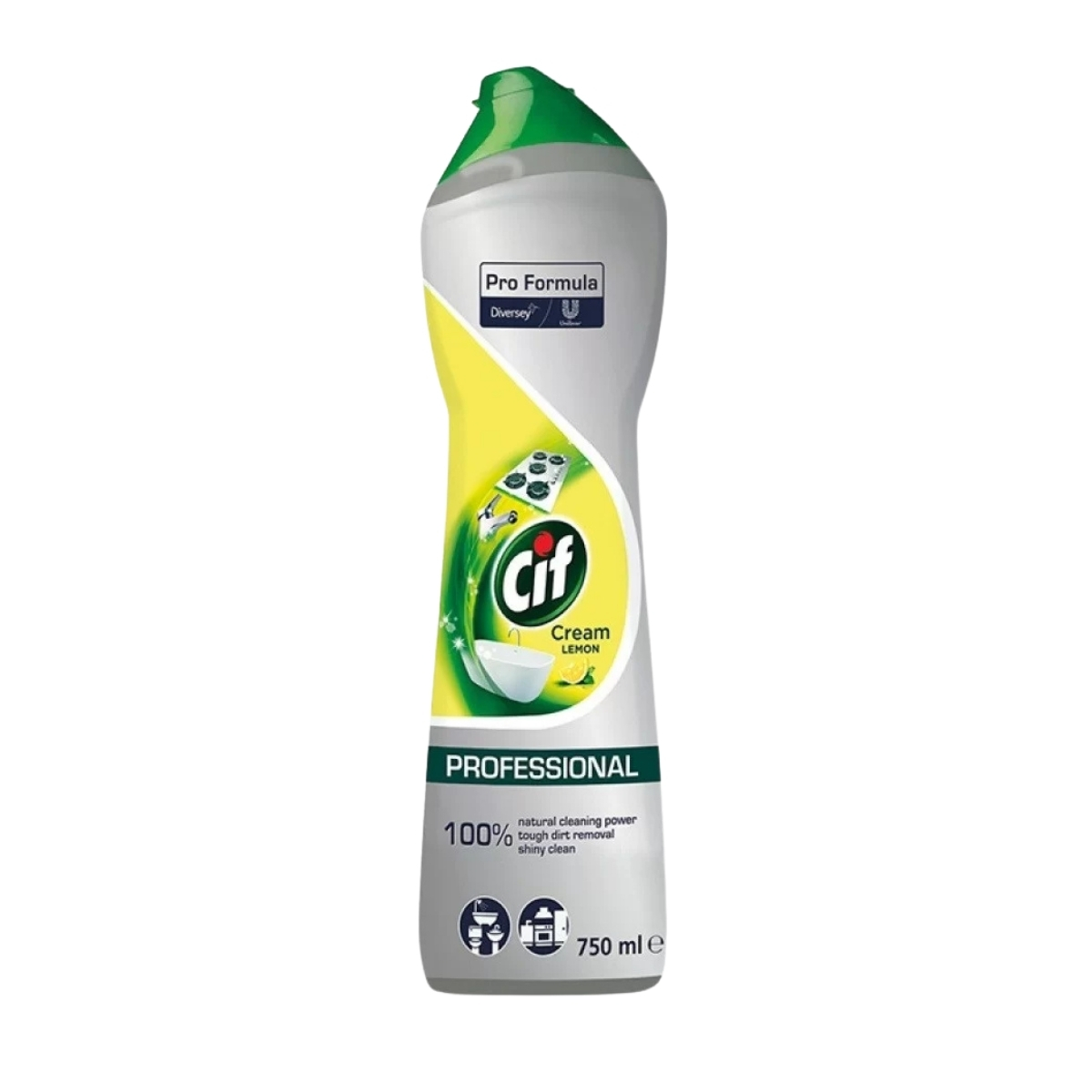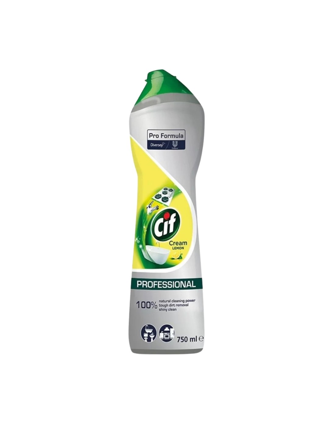 Cif Profesional Cream Lemon, 750 ml – crema de curățare profesională care îndepărtează eficient murdăria dificilă, grăsimea și petele persistente, fără a deteriora suprafețele. Formula sa unică, densă și concentrată, curăță în profunzime și lasă suprafețele curate, lucioase și parfumate cu prospețimea naturală a lămâii.