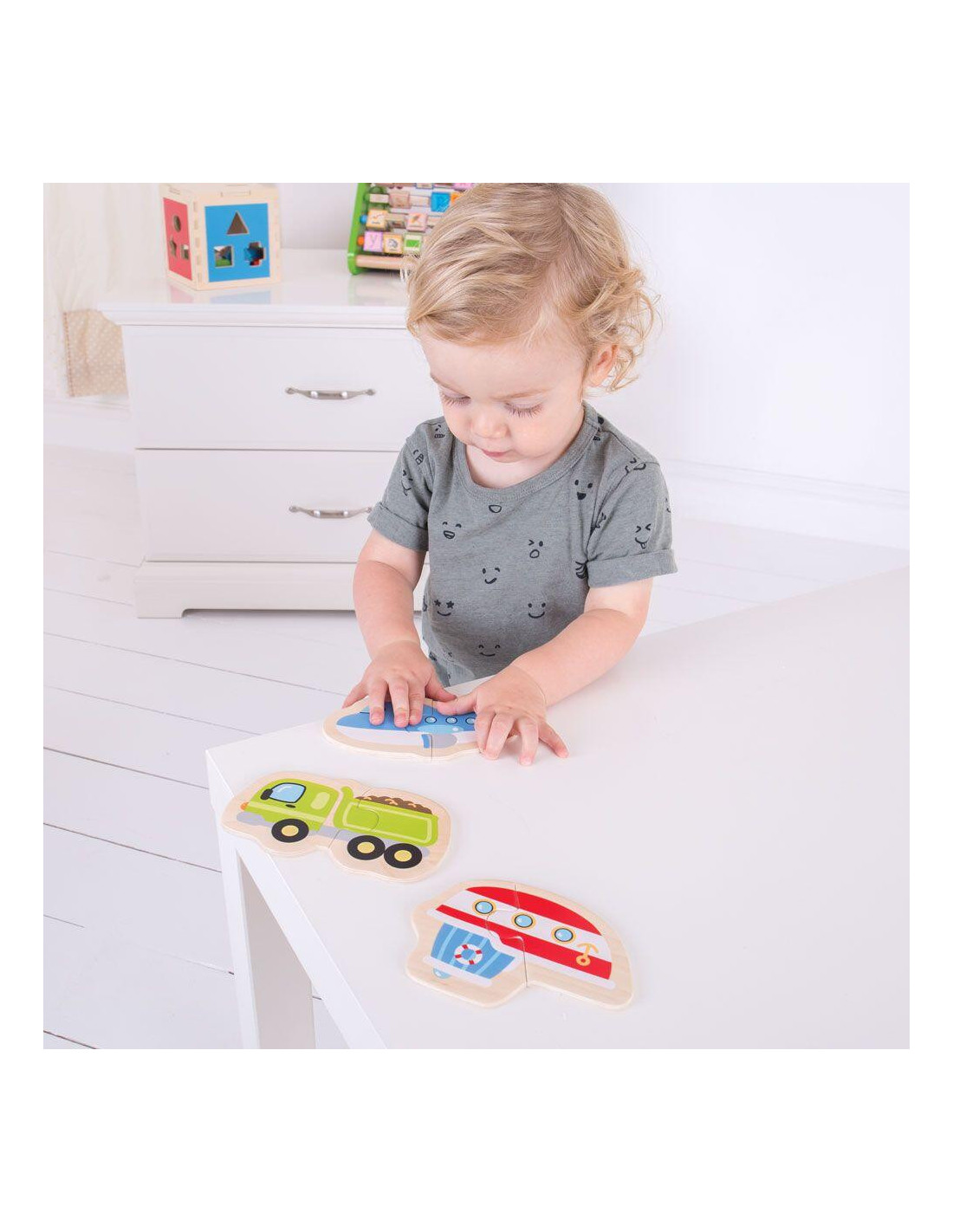 - set de patru puzzle-uri speciale pentru cei mai mici, fiecare puzzle este format din 2 piese