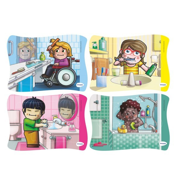 Set 4 puzzle IgienaSetul contine:4 puzzle formate din 6 piese rezistente din plastic 4 tavite cu rama pentru potrivirea puzzle-urilor.Puzzle-urile sunt utile pentru dezvoltarea abilitatilor de coordonare ochi-mana, a miscarilor fine, a perceperii relatiilor spatiale.Este un joc foarte util pentru uz individual sau pentru utilizarea in colectivitati - crese, gradinite, scoli, activitati after-school, locuri de joaca, sali de asteptare.Dimensiune: 21 x 15 cm
