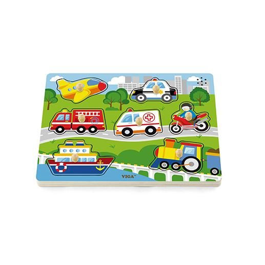 Acest puzzle contine o mare surpriza...! Ridica piesele cu vehicule desenate, aseaza-le inapoi si vei auzi sunetul produs de acel vehicul! Acest puzzle stimuleaza dezvoltarea capacitatii de a potrivi piese si dezvoltarea coordonarii mana-ochi. Dimensiuni: 300 x 225 x 33 mm. Jucaria este destinata copiilor cu varsta peste 18 luni. Toate jucariile marca VIGA sunt fabricate din lemn de calitate cu vopsele si cerneluri non-toxice, supuse testelor de siguranta respectand standardele pentru jucarii ale Uniunii Europene EN71 si ASTM. Nu lasati ambalajul produsului la indemana copiilor. Indepartati orice ambalaj al produsului inainte de a da jucaria copilului. Va recomandam sa supravegheati copilul in timp ce se foloseste produsul. Pastrati instructiunile si etichetele pentru referinte viitoare. Feriti produsul de foc, temperaturi ridicate si umiditate.