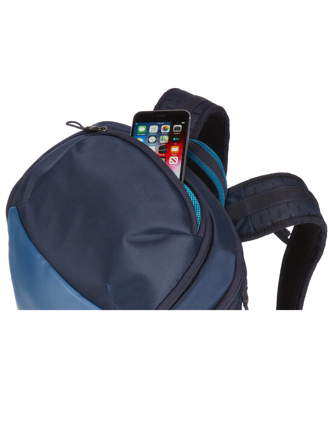- Accesați rapid un telefon și obiecte mici în buzunarul superior cu fermoar, cu căptușeală moale și pereți din plasă