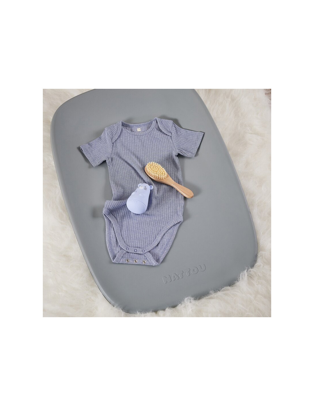 Saltea de infasat, Nattou, Softy, Moale, Utilizabil si fara husa, Design ergonomic, Spuma PU, 70x50x10 cm, Fara BPA, 0 luni+, Gri
